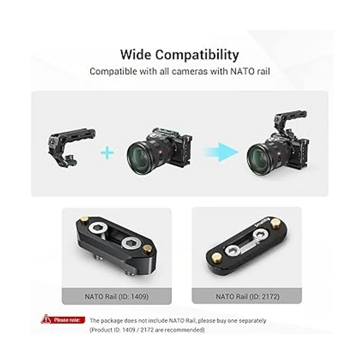 SmallRig Mango superior ligero de la OTAN, agarre OTAN de liberación rápida para jaula de cámara réflex digital, mango superior universal con 5 adaptadores de zapata fría y abrazadera NATO Lite 3766