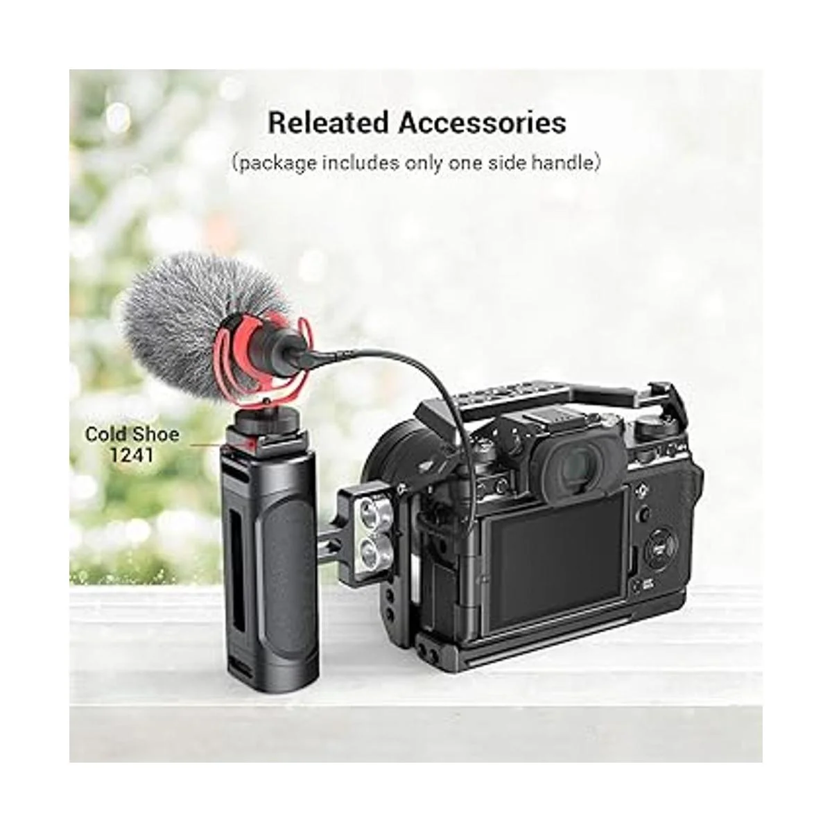 Opciones de montaje: el mango SmallRig 2916 soporta opciones de montaje adicionales: el flash y el micrófono se pueden montar a través de la zapata fría 1241, y la correa de muñeca, como 2456, se pueden montar a través del ojal para evitar que la cámara se caiga accidentalmente.