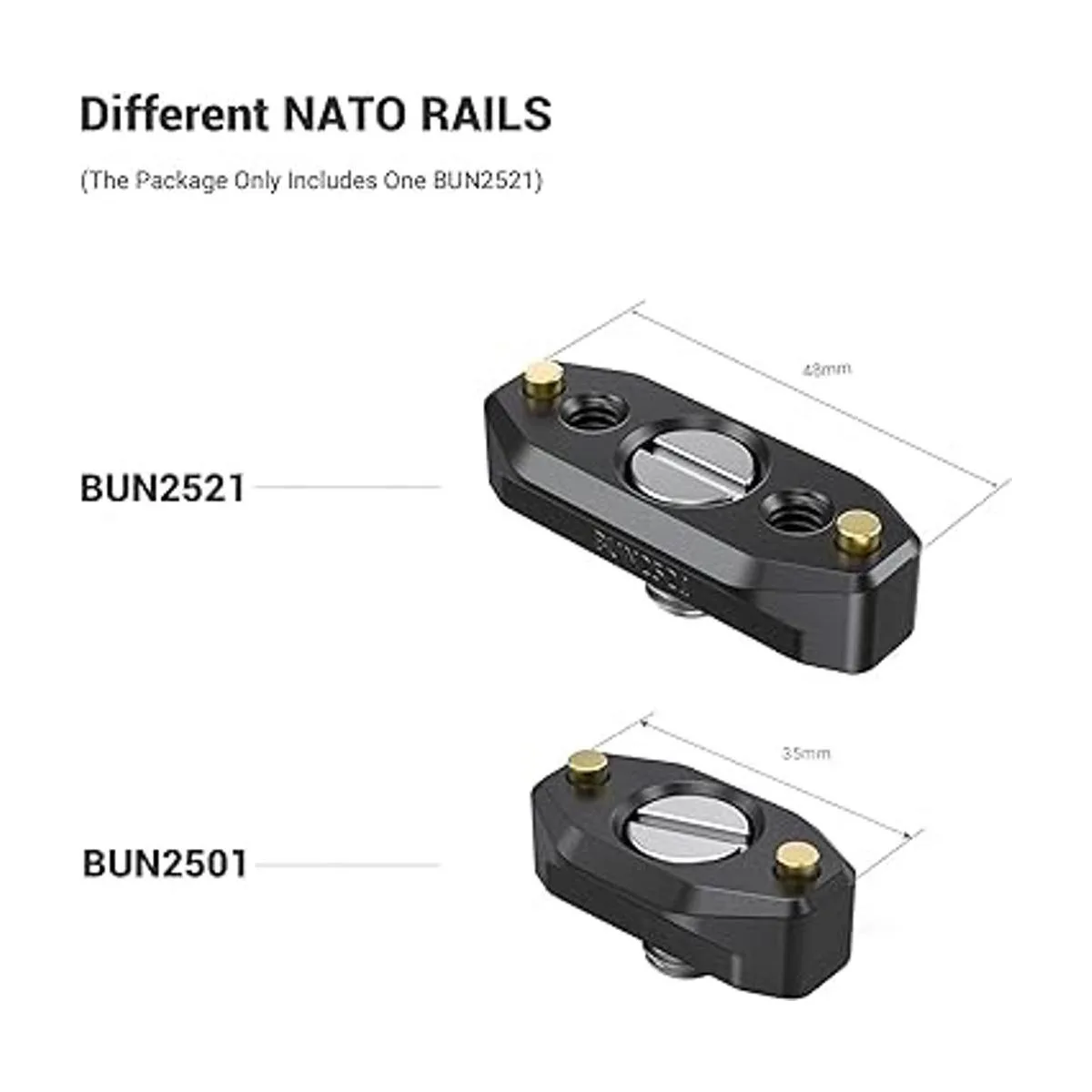 Otros rieles NATO Si prefieres otras opciones de montaje de riel NATO, tenemos SmallRig NATO Rail BUN2468 1.969 in, NATO Rail BUN2483 2.756 in, NATO Rail BUN2484 3.543 in, NATO Rail BUN2486 5.906 in.