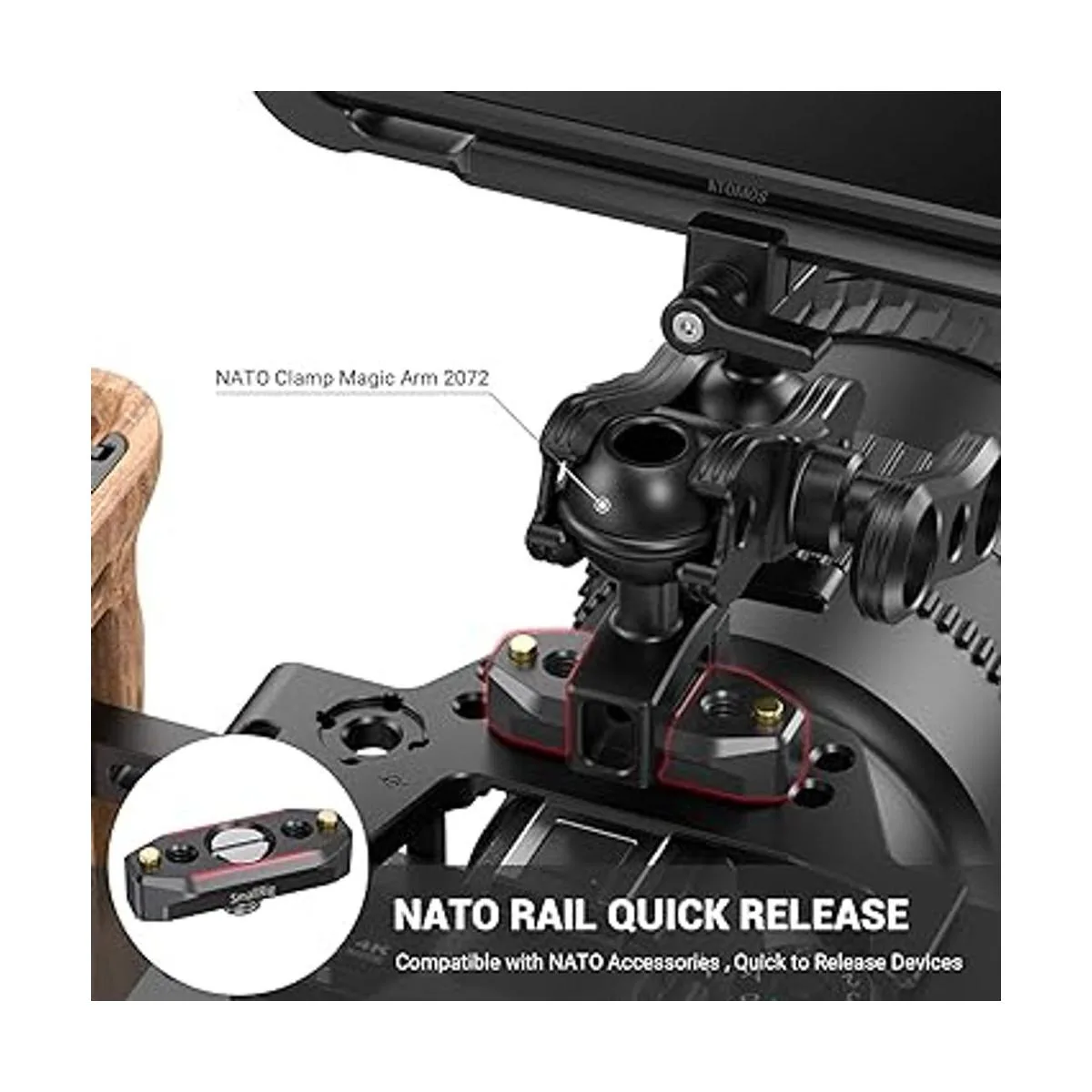 Liberación rápida: el riel NATO es compatible con abrazaderas NATO u otros accesorios cuenta con abrazadera NATO para una liberación rápida. Por ejemplo, SMALLRIG Magic Arm 2071, NATO Clamp 1973, NATO Handle 1995/2187.