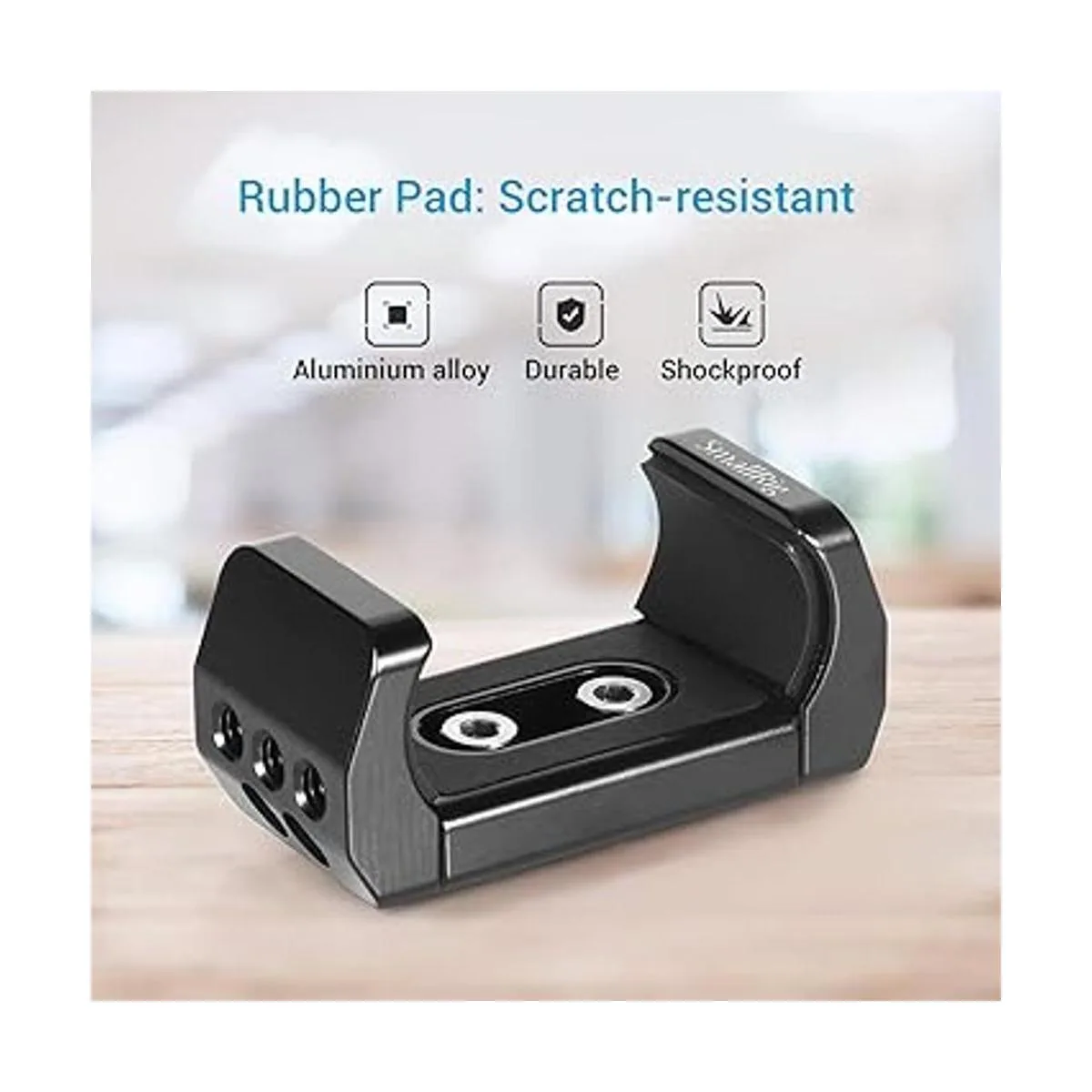 Puntos de montaje: en la parte superior, inferior y trasera del soporte, hay múltiples agujeros roscados de 1/4 pulgadas para conectar con otros accesorios, como el mango superior SMALLRIG 1638, la abrazadera de doble varilla SMALLRIG 942, el brazo mágico SMALLRIG 2070 o las jaulas SMALLRIG.