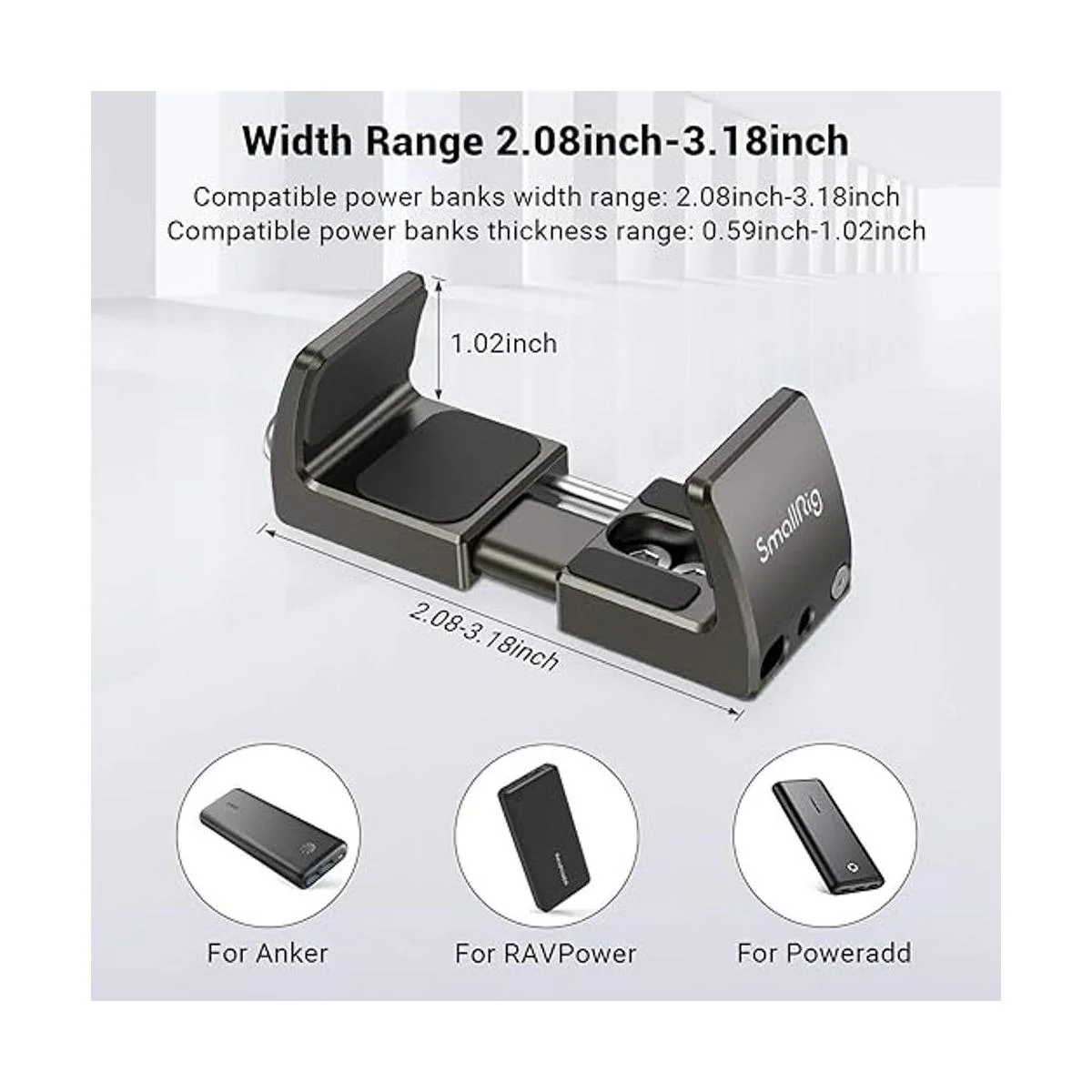 Abrazadera cargada por resorte: sostendrá bancos de energía con rango de ancho de 2.087 in a 3.189 in, que cubre la mayoría de productos de banco de energía en el mercado. Como apto para Anker, apto para RAVPower, apto para POWERADD, etc