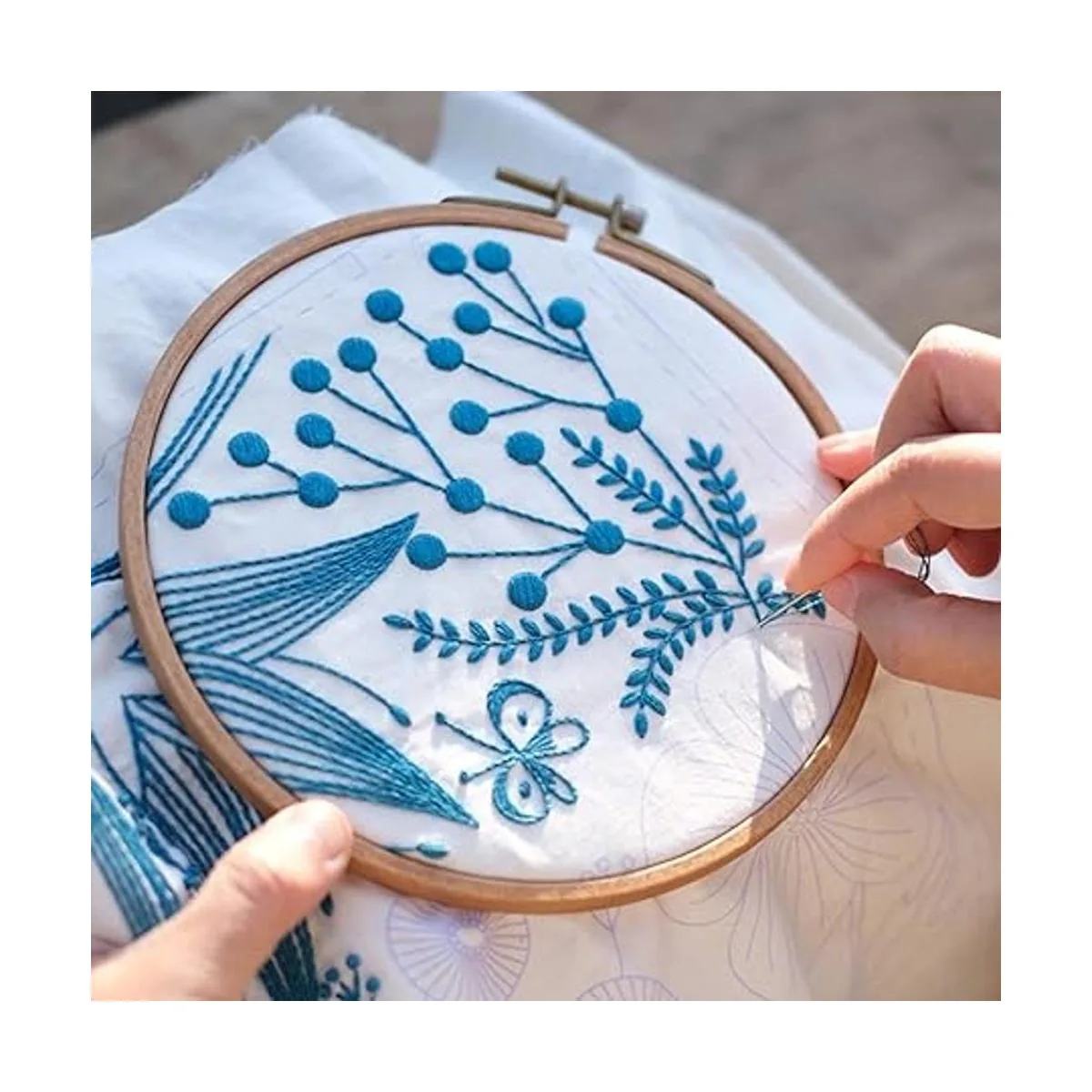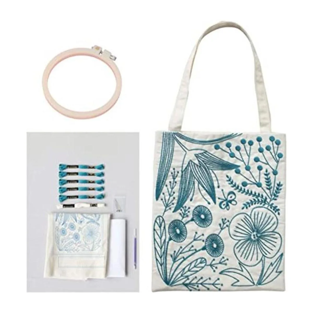 SmartFeather Kit de bordado de flores, bolsa de mano, kit de bordado a mano para adultos principiantes con patrones de bordado, aro de bordado, kit de costura DIY