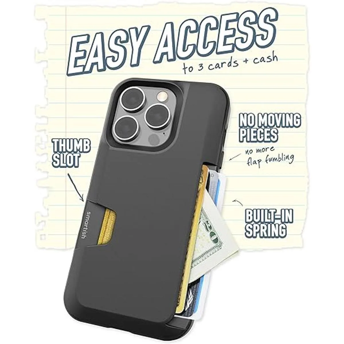 Smartish Funda tipo cartera para iPhone 14 Pro Wallet Slayer Vol. 1 delgado protector Soporte para tarjetas de crédito, negro Tie Affair