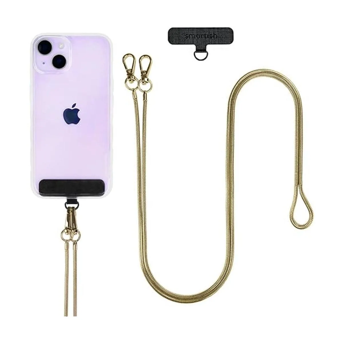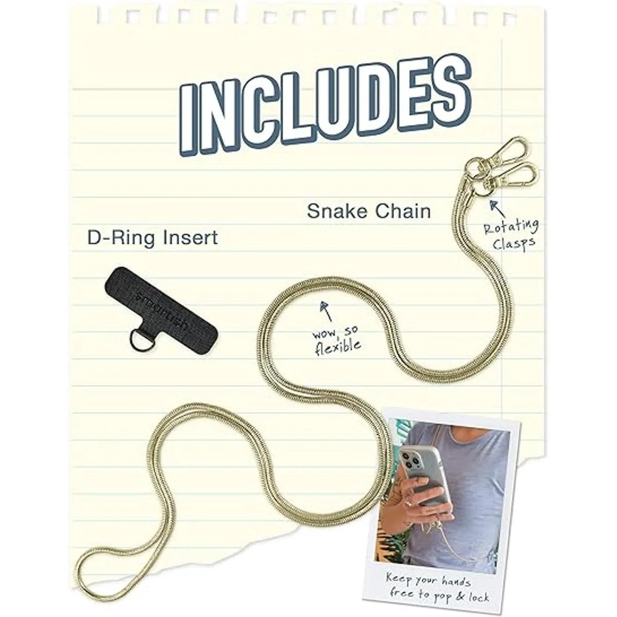 Smartish Funda transparente Funda universal para teléfono inteligente con cordón cruzado desmontable Cadena de serpiente dorada para el cuello