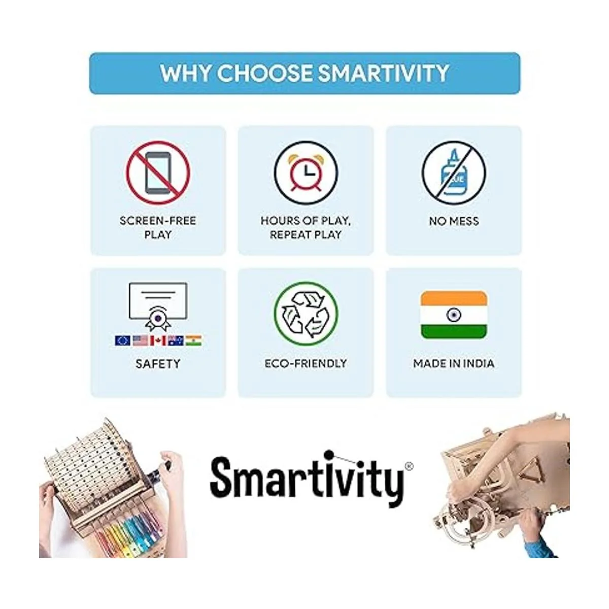 Confiado por los padres, amado por los niños en 24 países incluyendo Estados Unidos, Europa: seguro no tóxico. Probado en laboratorios globales. Supera las normas globales de seguridad de juguetes. Marca global de la India