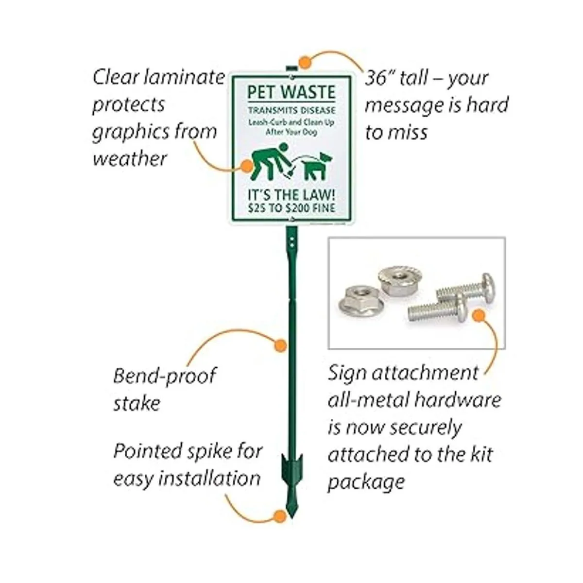 SmartSign Pet Waste Transmits Disease Clean Up After Your Dog Yard Sign, Its the Law 25 to 200 Fine Sign 10 x 12 Placa de aluminio con estaca de 3