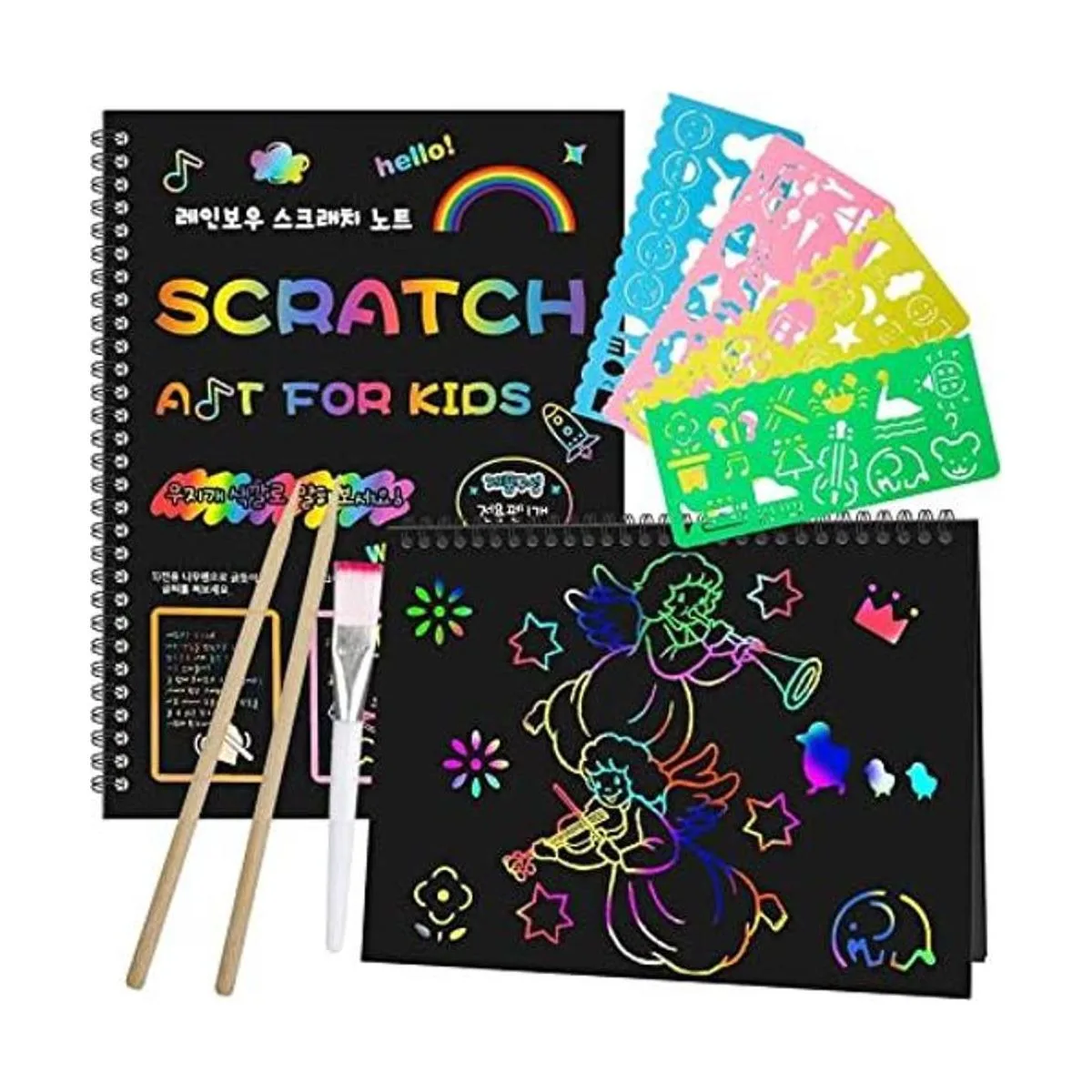 Excelente relación calidadprecio: el juego combinado incluye 2 libros tamaño 10.2 x 7.5 pulgadas, 10 hojas para una sola pieza de arte de papel para rascar, 2 lápices de dibujo, 4 lápices diferentes. Crea arte verdaderamente único para rascar con este kit de almohadillas de papel para rascar de primera calidad, asequible y abundante. Deja que tus hijos se alejen de las pantallas electrónicas.