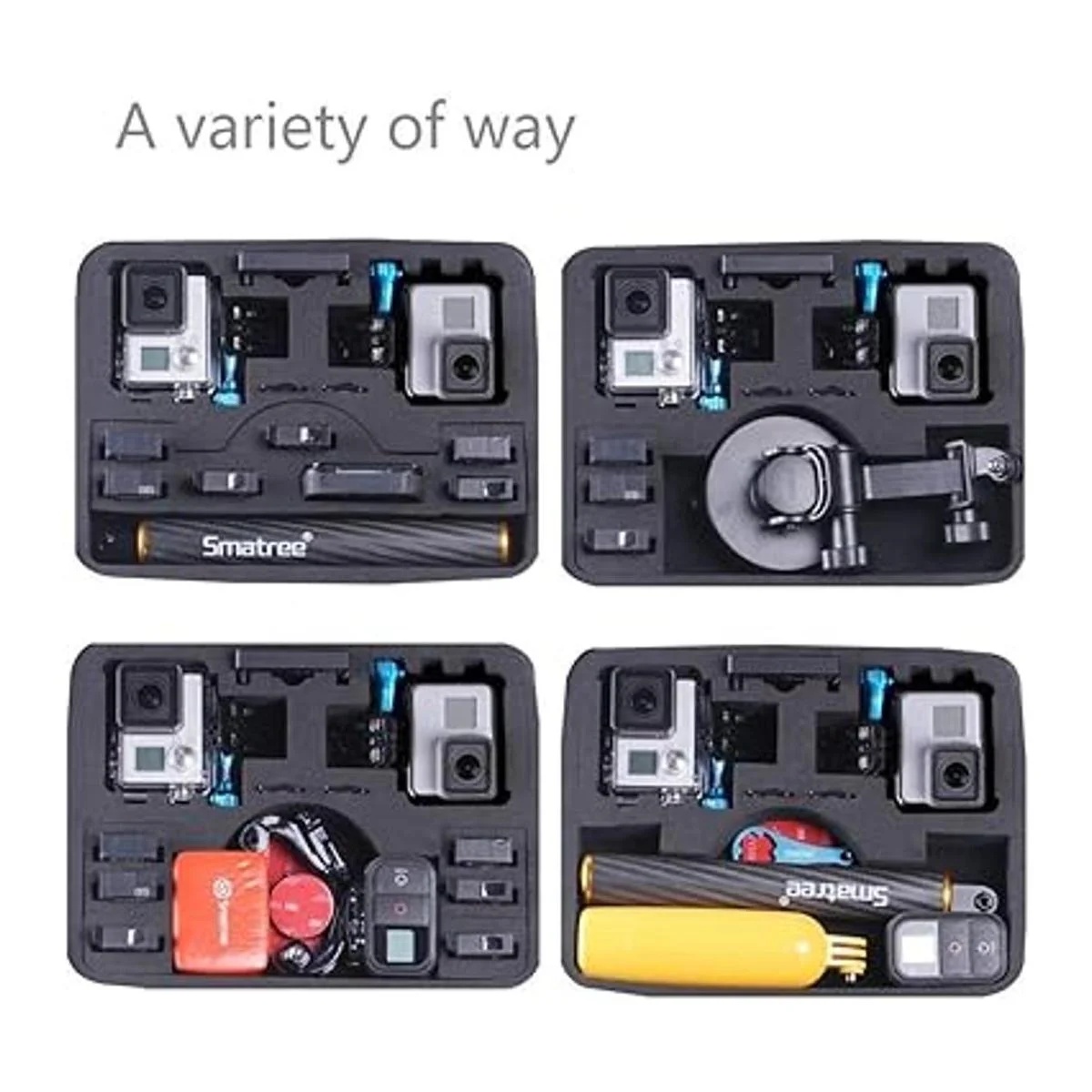 Smacase G260SL con espuma EVA de alta calidad para una mayor durabilidad cuenta con compartimentos para cámaras GoPro y accesorios esenciales. Cámara y otros accesorios no están incluidos