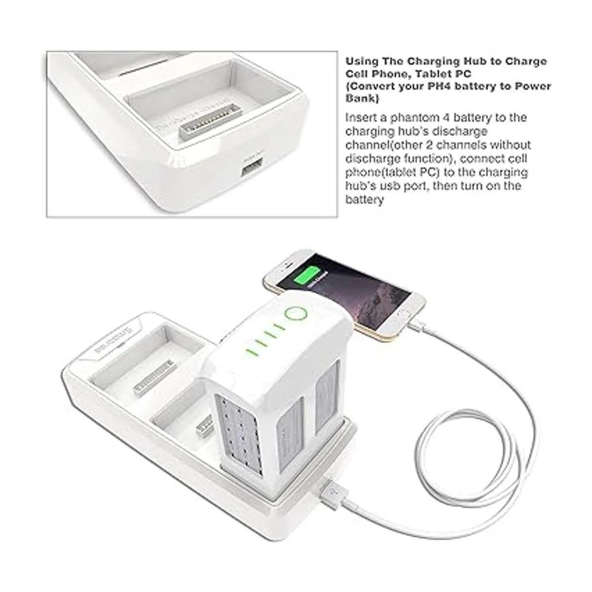 Smatree Hub de carga de batería compatible para DJI Phantom 44 Pro4 Advcarga 3 baterías una por una, conversión de batería Phantom 4 en banco de energía