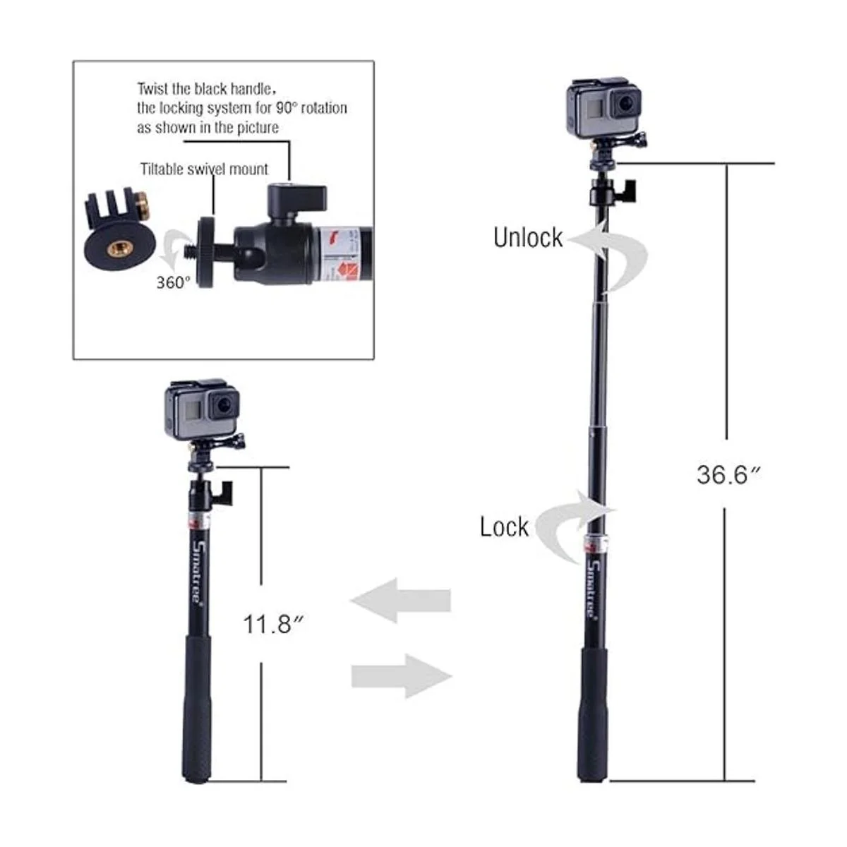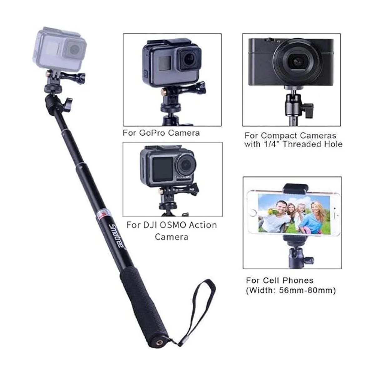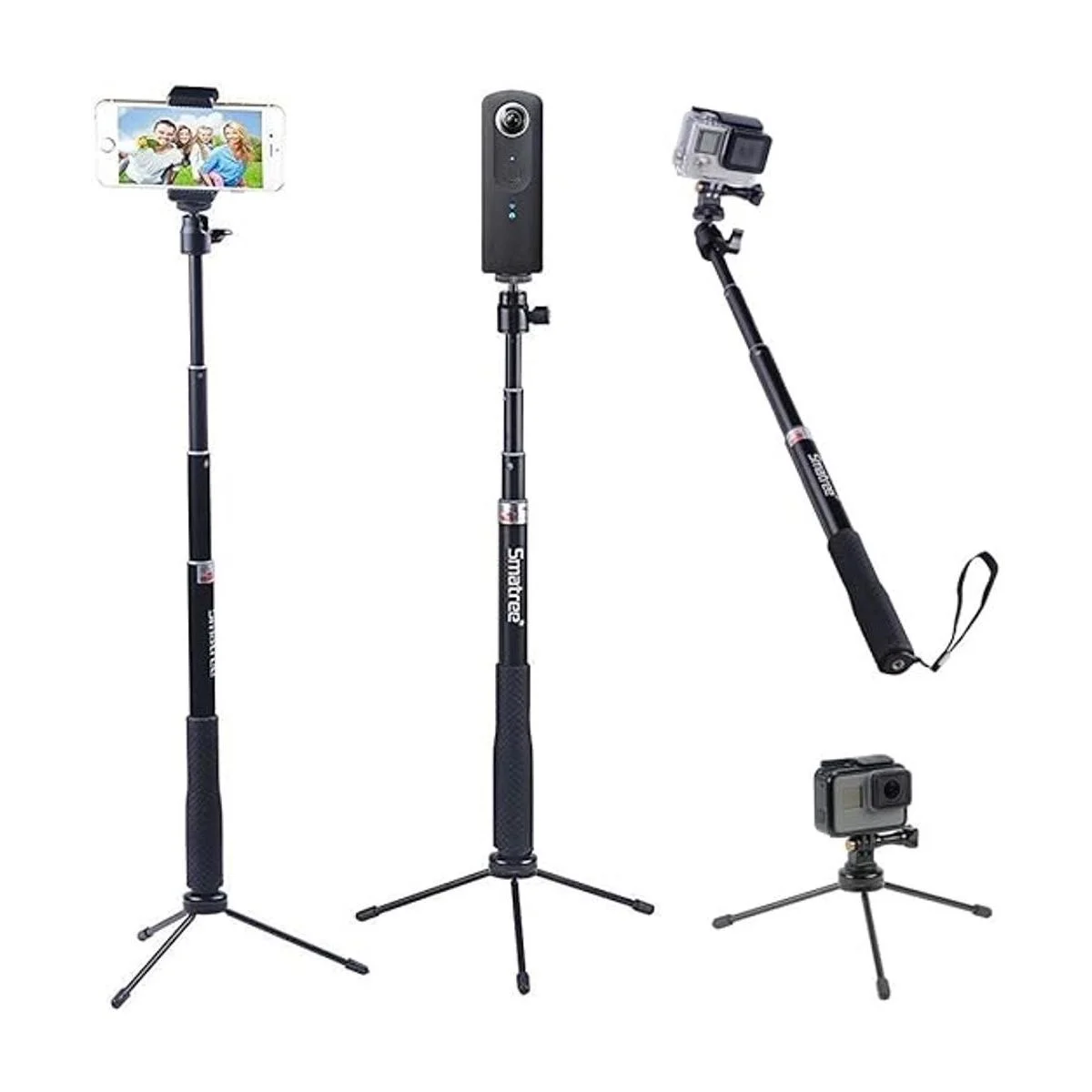 Smatree Q3 Barra telescópica para selfie con soporte de trípode compatible con Insta360, GoPro Hero 111098765433MaxSessionGOPRO Hero 2018AKASOOSMO Action CameraDJI Pocket 2SJCAMy teléfono celular