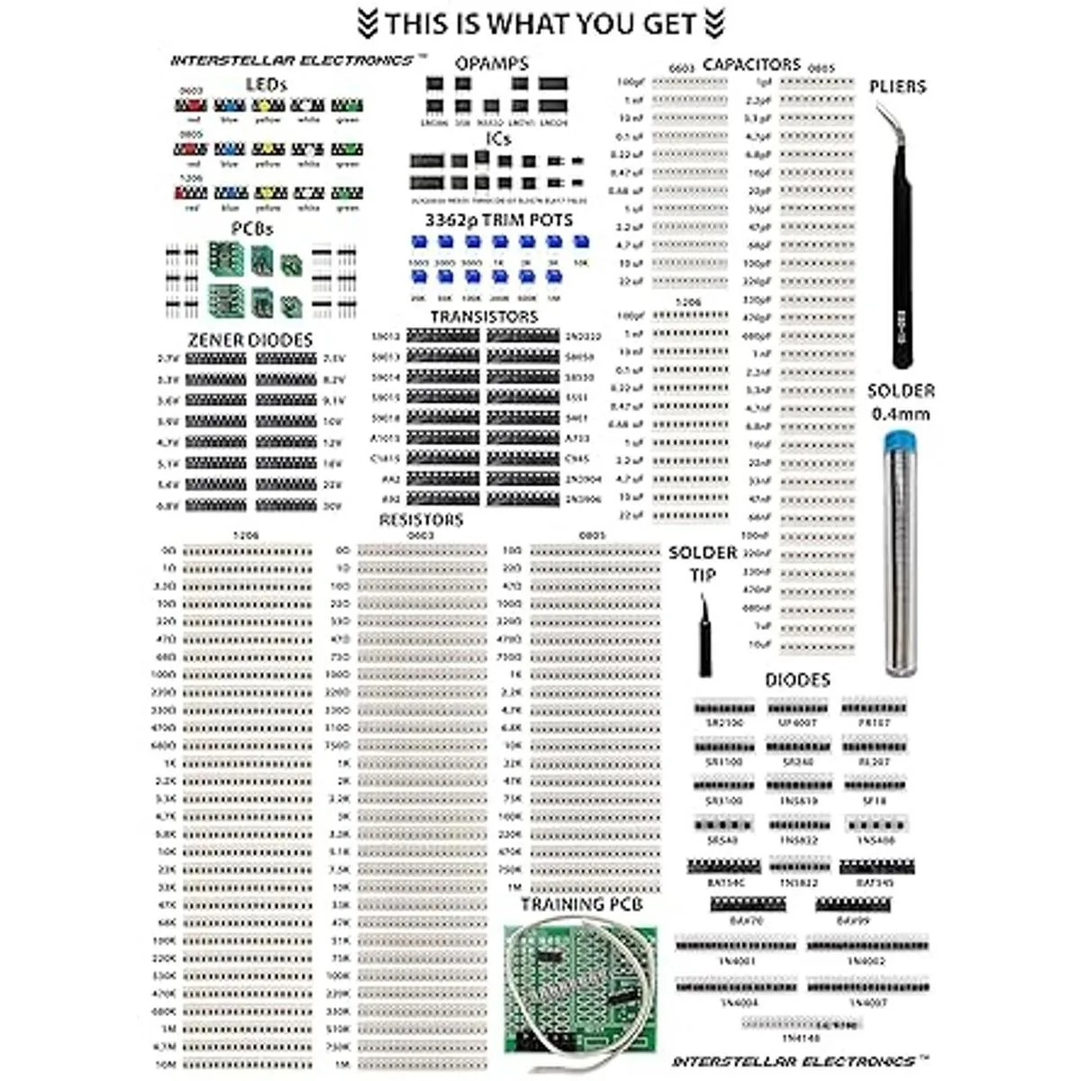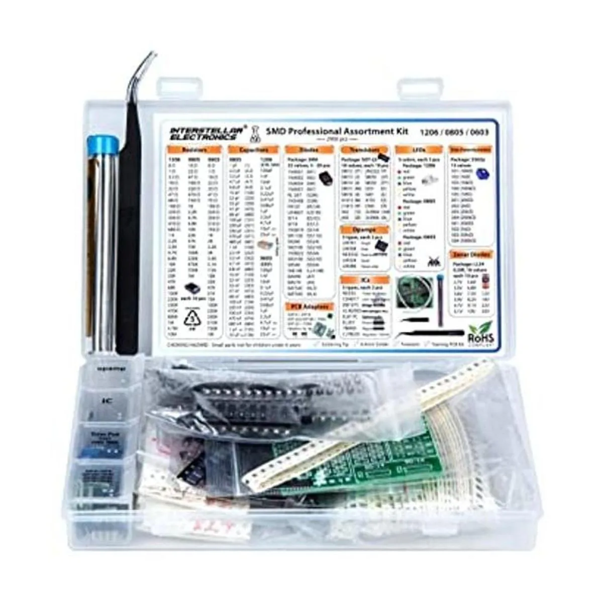 SMD 1206 0805 0603 surtido de componentes, Resistor, condensador, diodo, transistor, LED, OpAmp, IC, soldadura, PCB, SMT Soldadura Kit surtido 2900 piezas