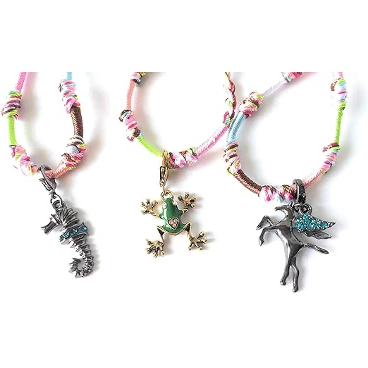 totem animal friendship bracelets: pastel multicolor 11.512 pulgadas, ajustable, con diamantes de imitación de joyería colgantes de animales pegaso, caballito de mar y rana para enganchar la pulsera. se requiere un pequeño montaje añade un encanto a la pulsera. pliegue el juguete origami tarjeta de instrucciones incluida. instrucciones plegables e instrucciones de juego se pueden encontrar en el sitio web de smiling wisdom y palabra clave: smiling wisdom.