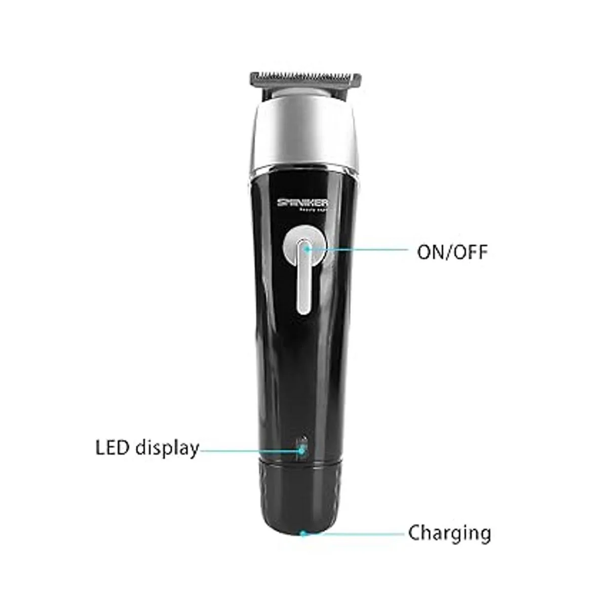 5 en 1 Este kit de aseo para hombre incluye una cortadora de pelo, recortadora de pelo, recortadora de nariz, afeitadora y recortadora de precisión. La cabeza del kit de aseo puede soportar el agua, pero por favor no pongas todo el cuerpo del motor en el agua.