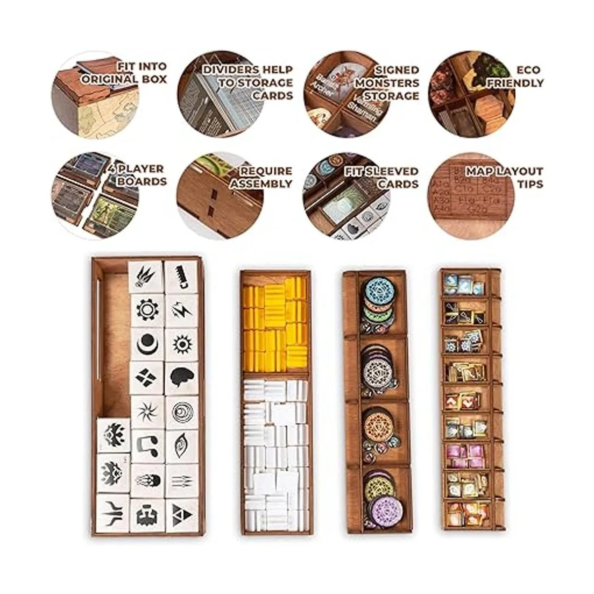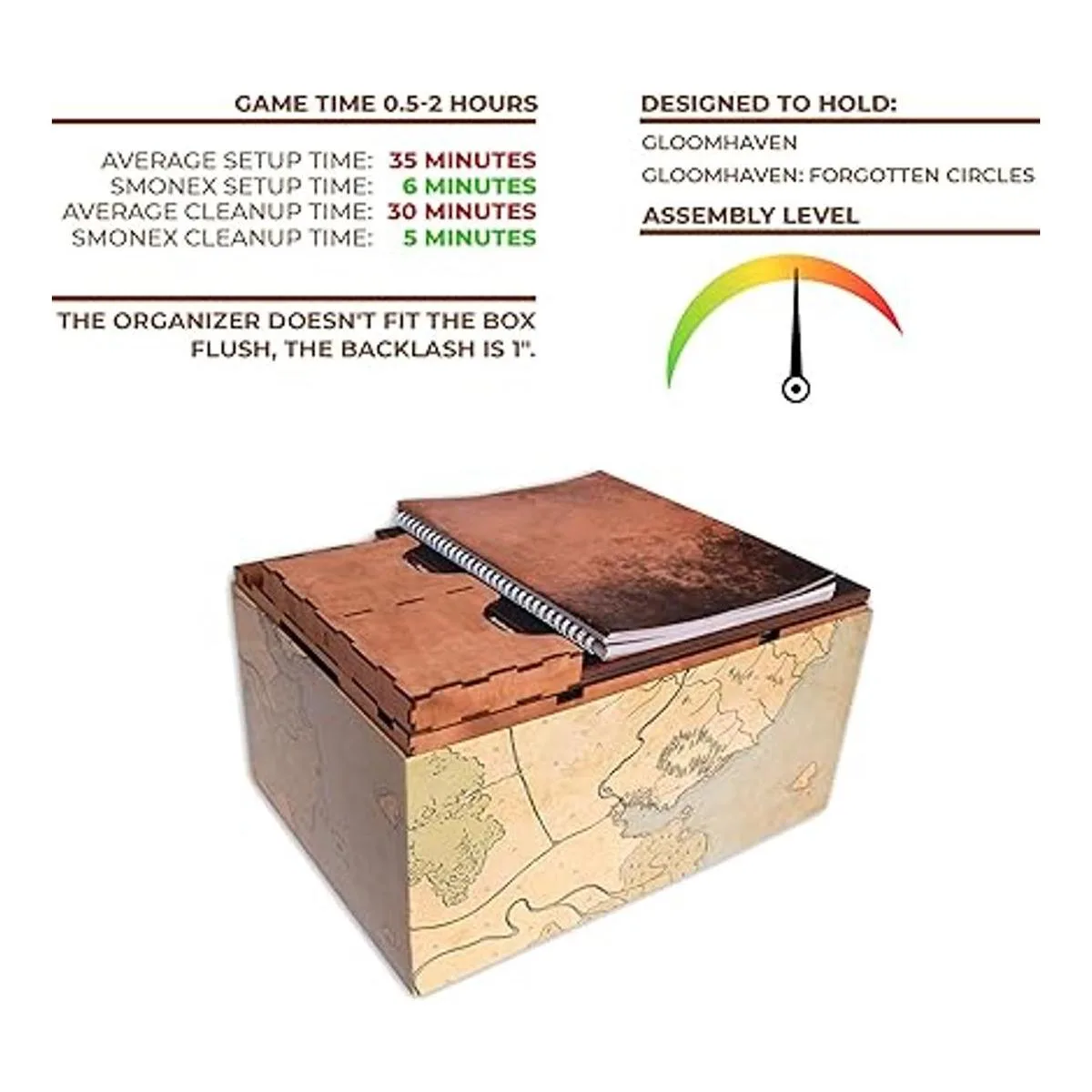 Smonex Organizador de madera y cuatro tablas de jugadores compatibles con el juego de mesa Gloomhaven, caja adecuada para almacenar todas las expansiones de Gloomhaven, inserto y almacenamiento de Gloomhaven