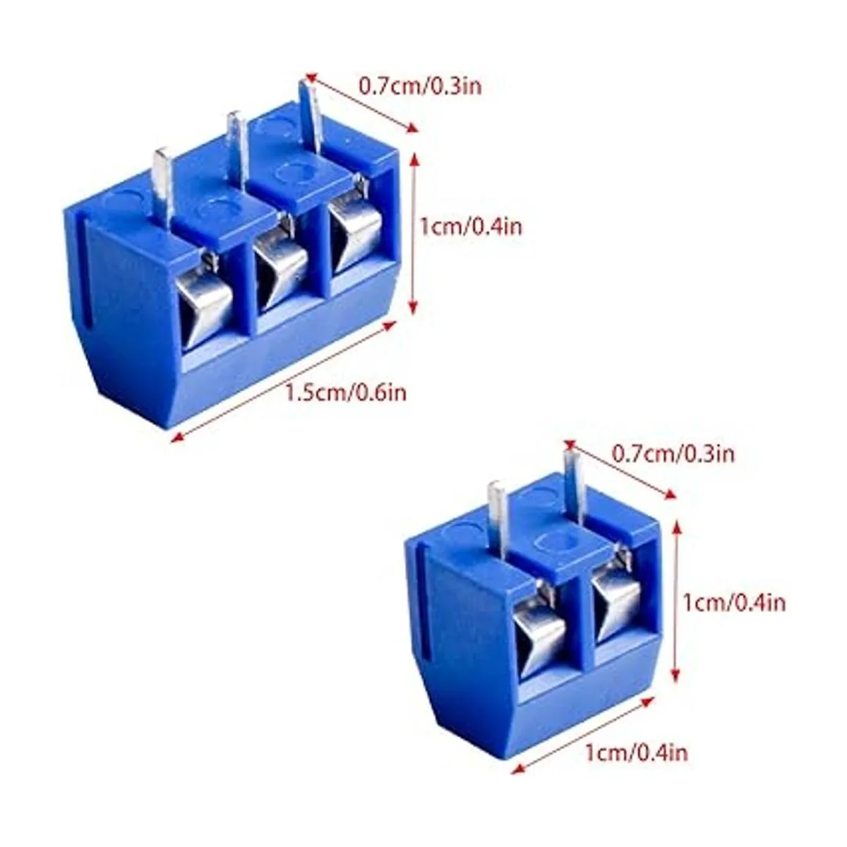 Bloque de terminales de tornillo: 5 piezas 5.083012P y 5 piezas 5.083013P. Paso: 0.200 in, voltaje nominal: 300 V, corriente nominal: 16 A.