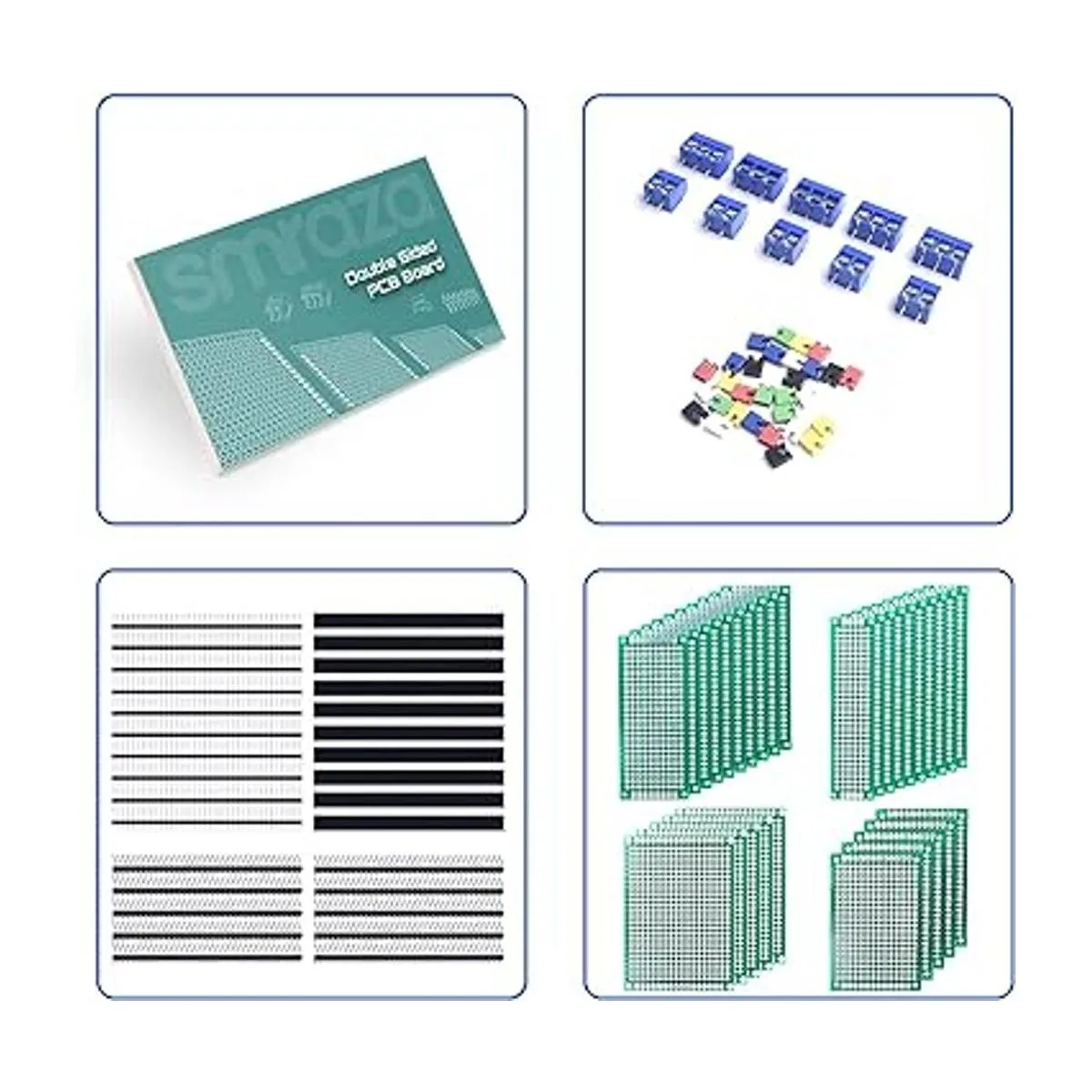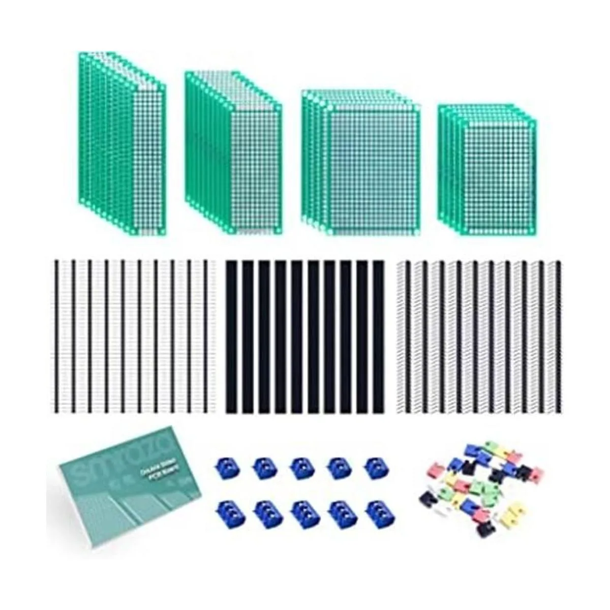 Smraza 100 piezas de placa PCB de doble cara, placas de prototipo para soldadura de bricolaje y placas de circuito de proyectos electrónicos, compatibles con kits Arduino, 30 conectores de cabezal macho y hembra de 40 pines de 0.100 in