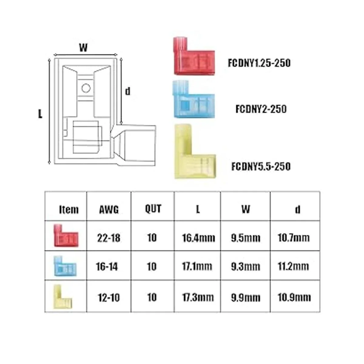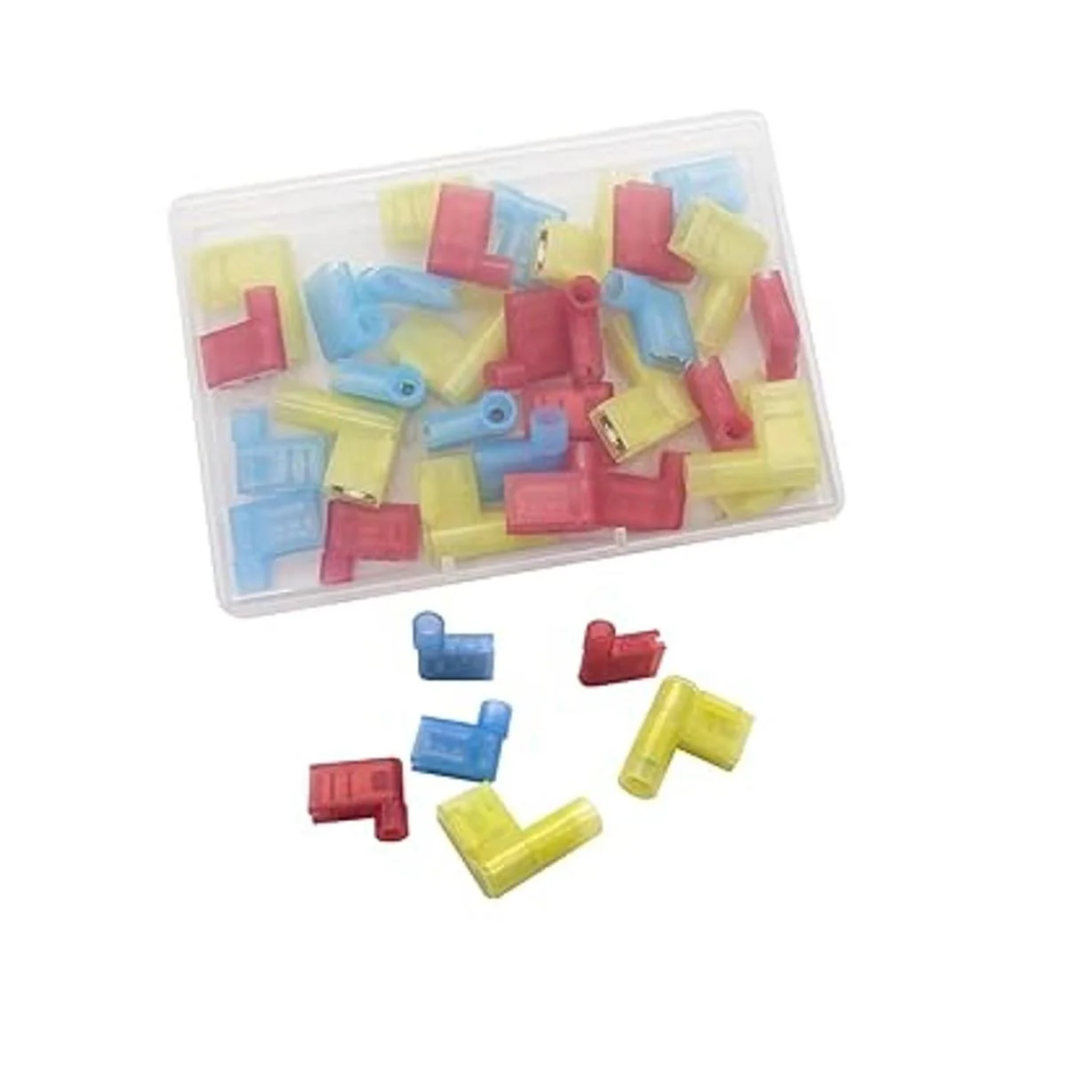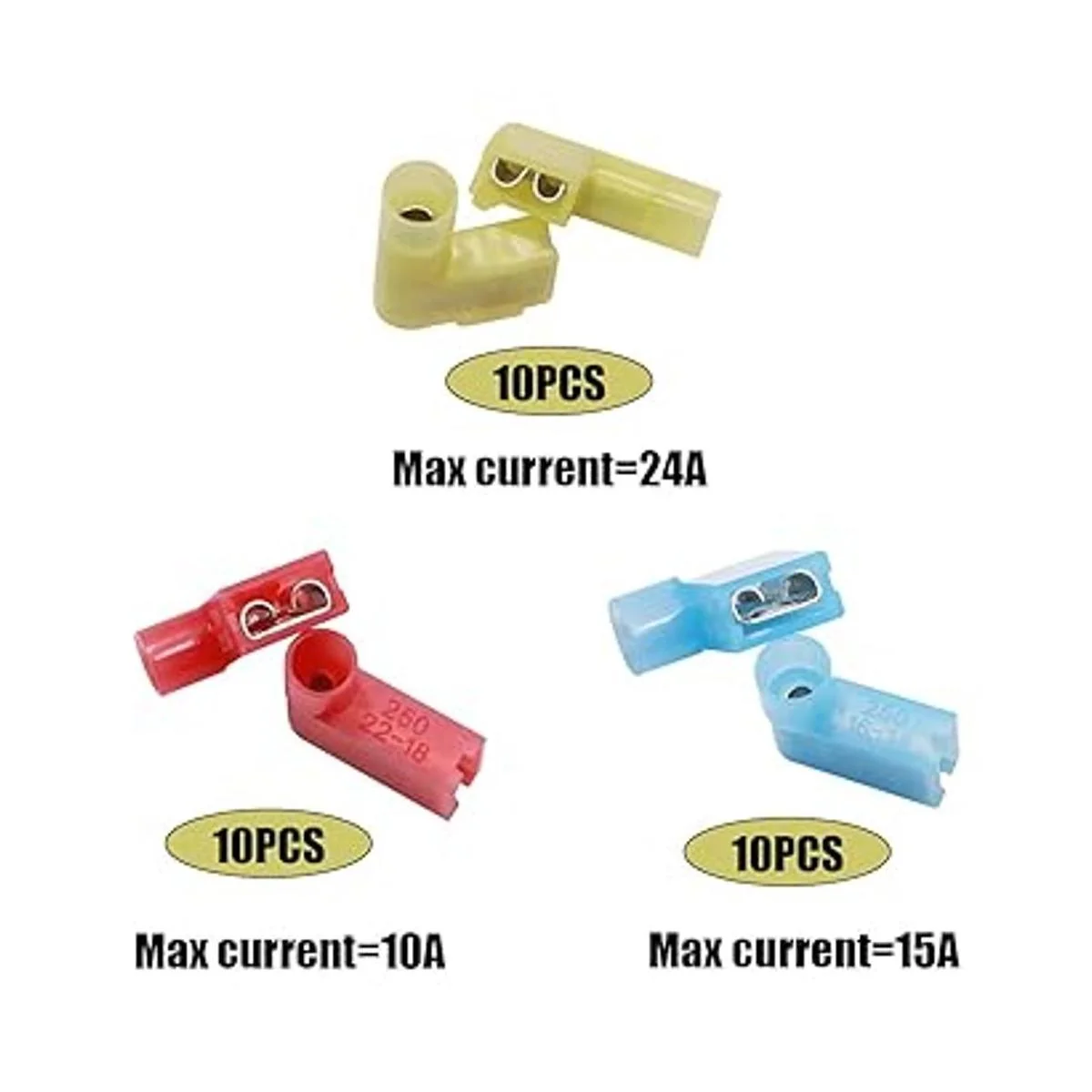 Tipo: terminal de crimpado de pala totalmente aislado de nailon rojo, azul y amarillo, adecuado para A.W.G. Cables 2218/1614/1210.