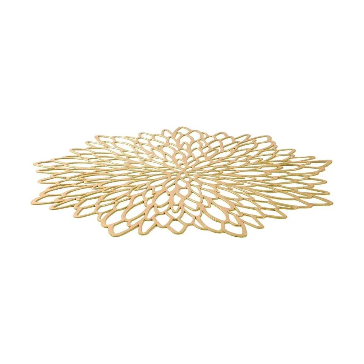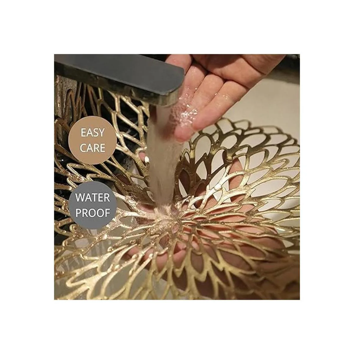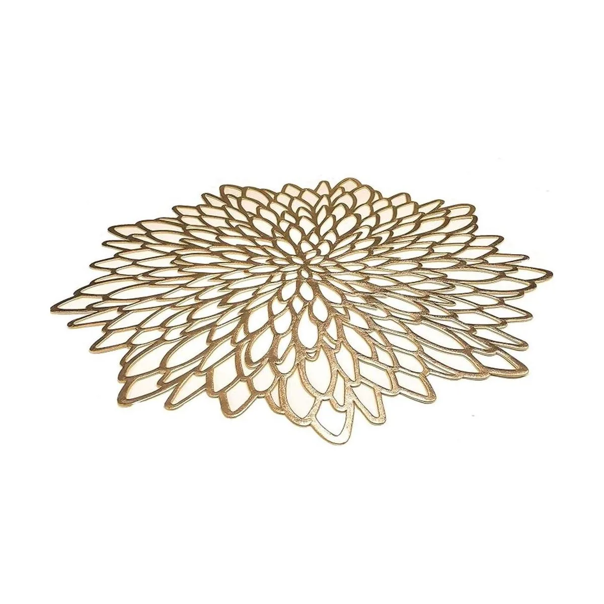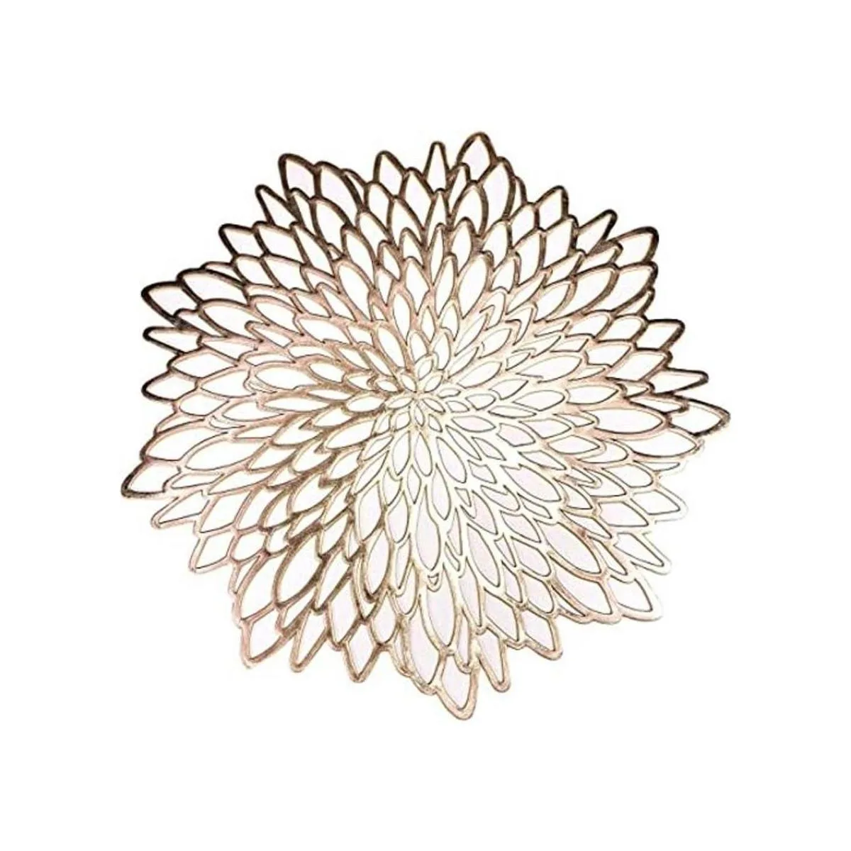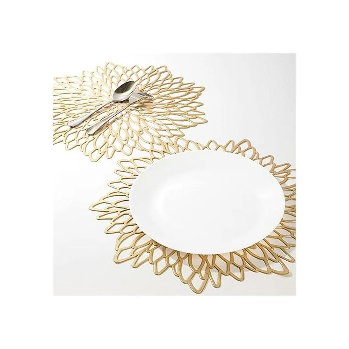 Snowkingdom Juego de 12 manteles individuales de vinilo prensado, color dorado, metálicos, para centro de mesa de boda 12 unidades, hojas doradas