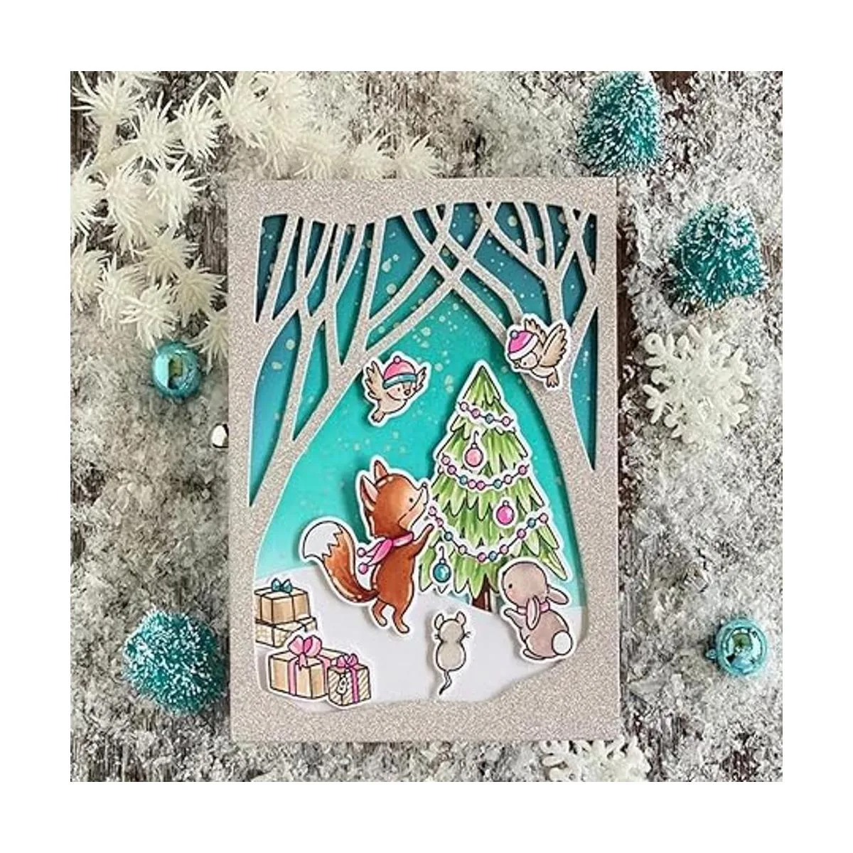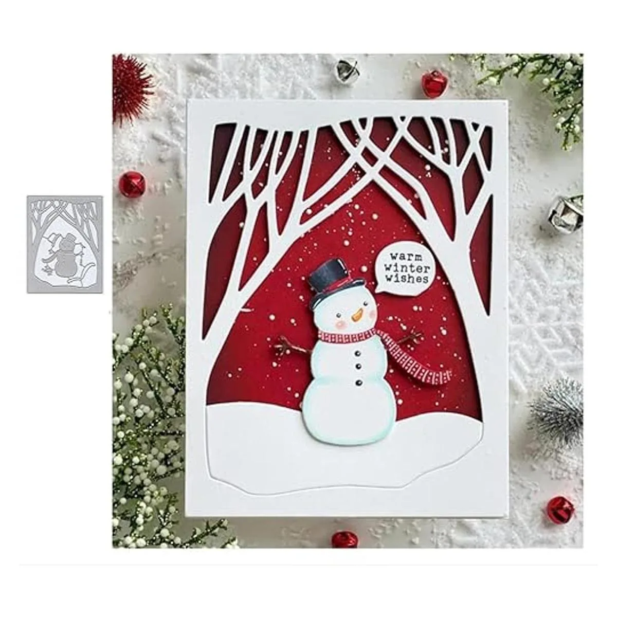 PatternSize: Snowman Trees Frame shape, 14 10.8cm/5.51 4.25inchApprox. Snowman Trees Frame Cutting Dies Cut Stencils for DIY Scrapbooking Photo Album Decorative Embossing Paper Dies for Scrapbooking Card Making Supplies.