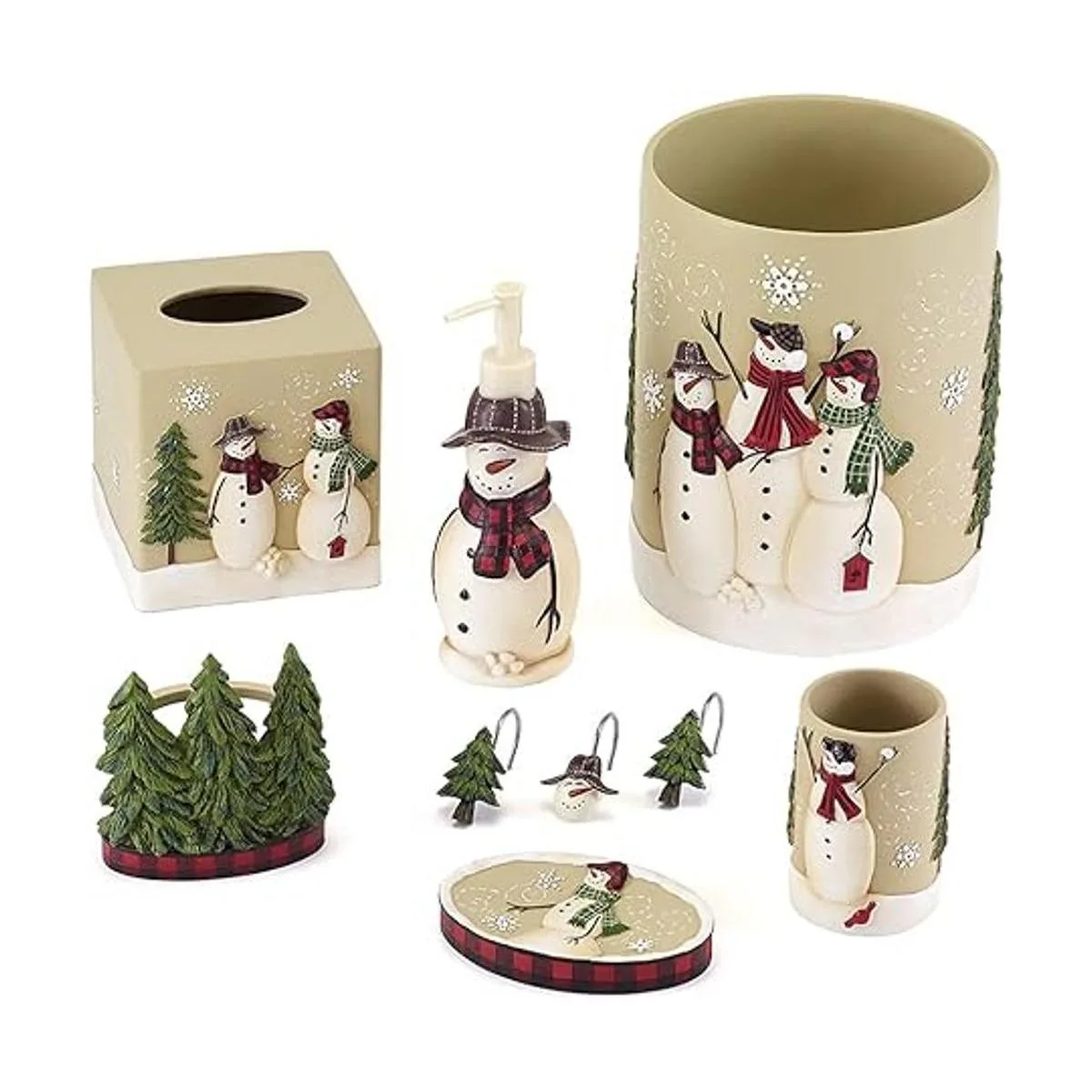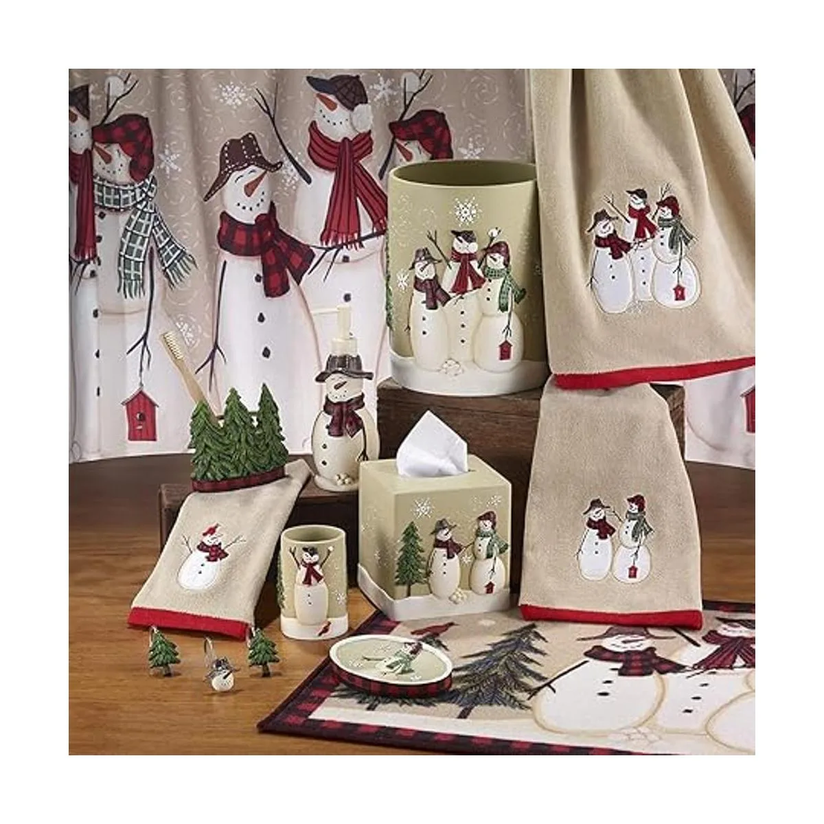 Mezcla y combina: echa un vistazo a la otra colección Snowmen Gathering que combina accesorios, toallas, cortinas de ducha y alfombras.