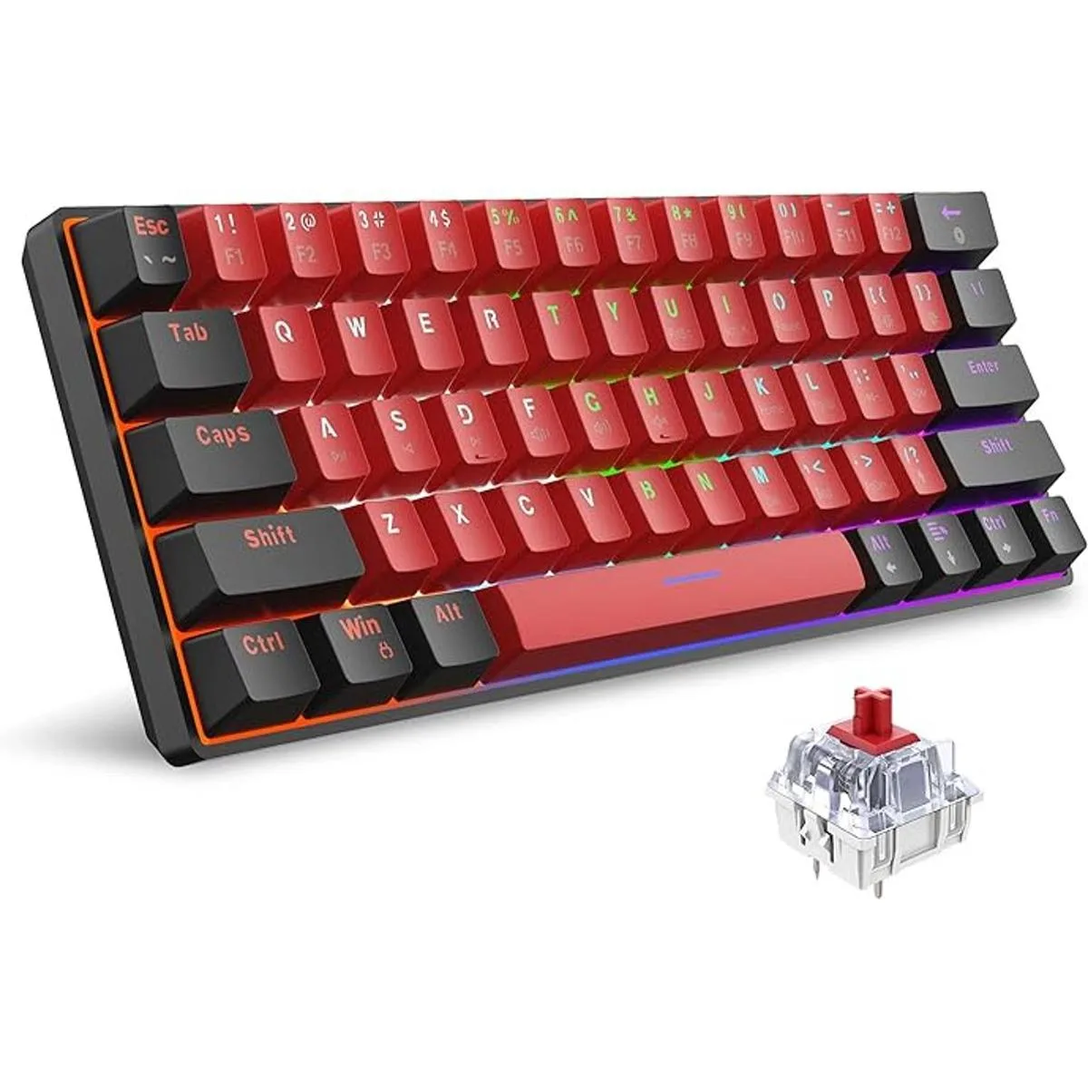 Snpurdiri Teclado mecánico 60 con cable, mini teclado para juegos con 61 teclas de interruptores rojos para PC, Windows XP, Win 7, Win 10 negro, rojo, interruptores rojos