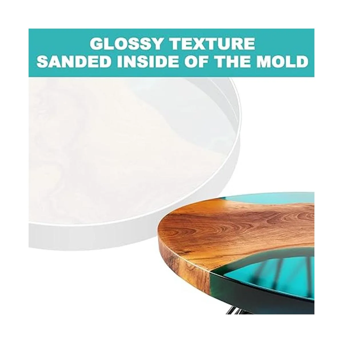 Moldes de silicona extragrandes: el molde de mesa de resina es de 24.0 in de diámetro, 2.4 in de altura, 0.157 in de grosor, tiene suficiente tamaño para personalizar tu propia mesa de río de resina única y brillante