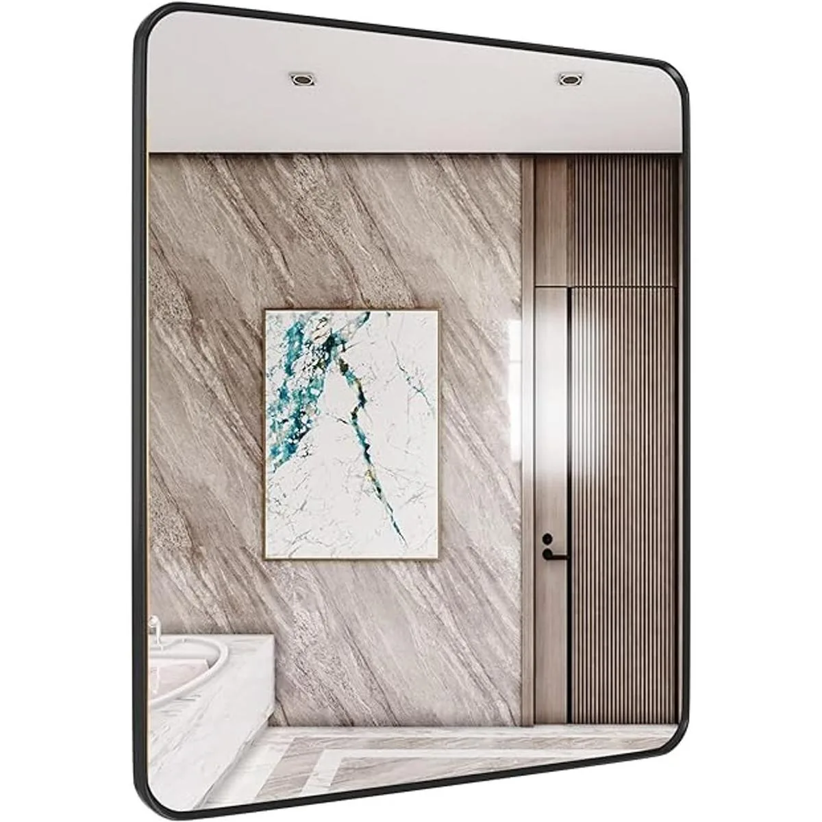 Espejo de pared sin cobre para el hogar: esta forma rectangular de metal con un espejo grande de esquina redondeada satisface las necesidades de decoración de la industria, estilo rústico y moderno de baño, tocador de dormitorio, entrada, granja, hotel o salón.