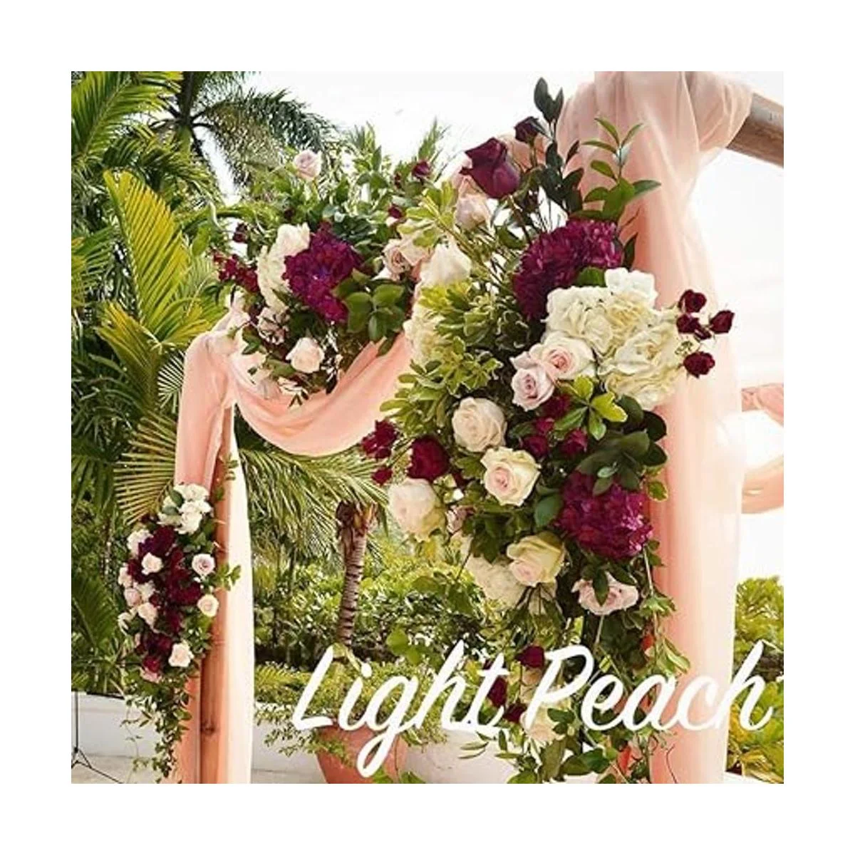 SoarDream Camino de mesa de gasa de 10 pies, paquete de 10 unidades, 27 x 120 pulgadas, cubierta de mesa de gasa de melocotón claro, decoración de cortinas de tela para arco de boda al aire libre