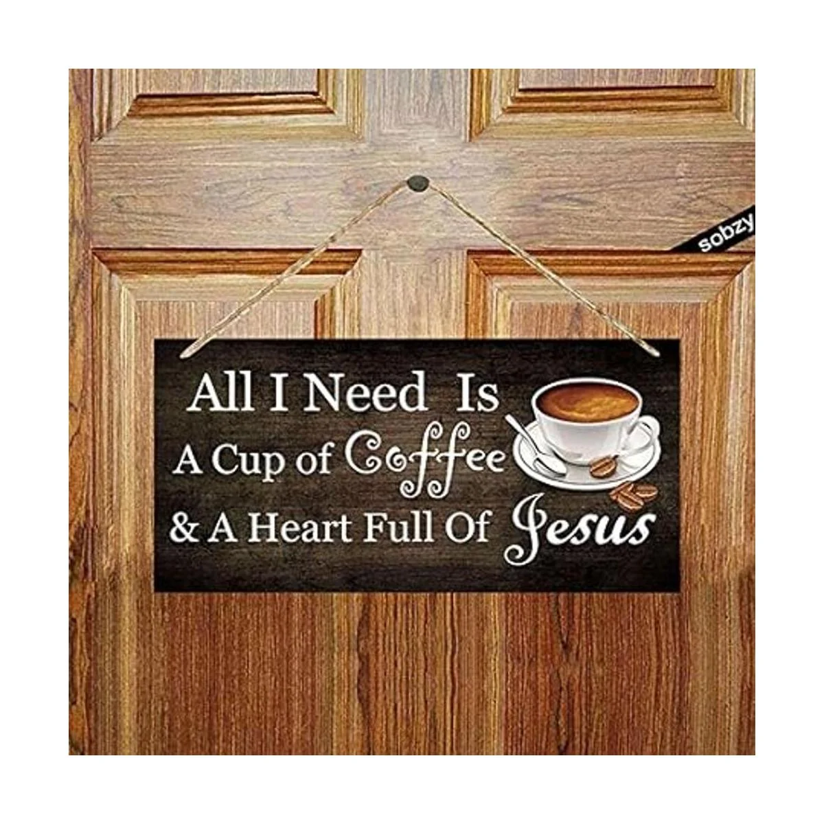Sobzy All I Need Today is Coffee and Jesús Placa colgante de madera cristiana, decoración religiosa, placa de pared religiosa, regalo de casa de fe, casa de la casa