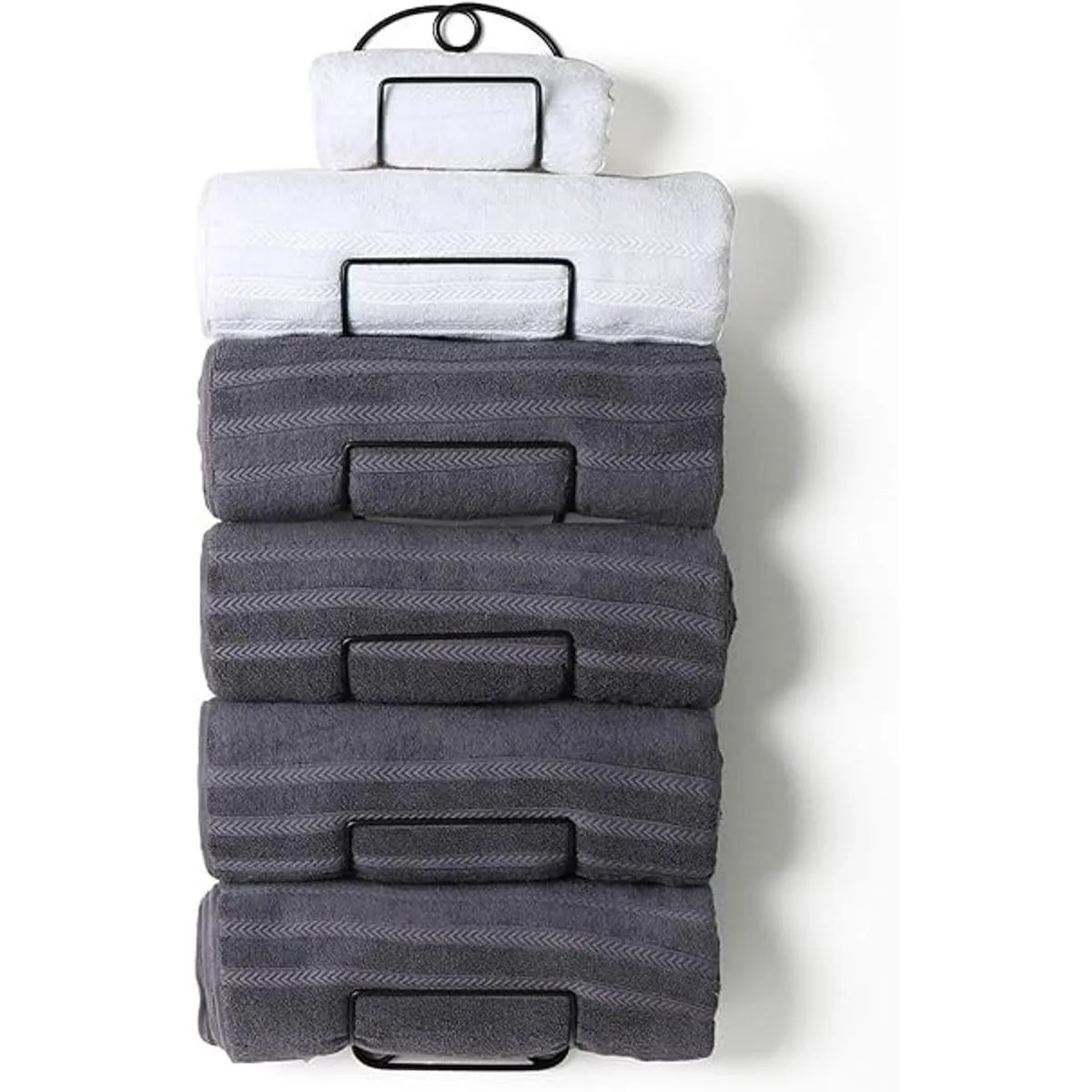 El soporte de almacenamiento de toallas de alambre de metal es resistente y duradero, el revestimiento resistente a la corrosión elimina tu preocupación por el vapor de agua en el baño