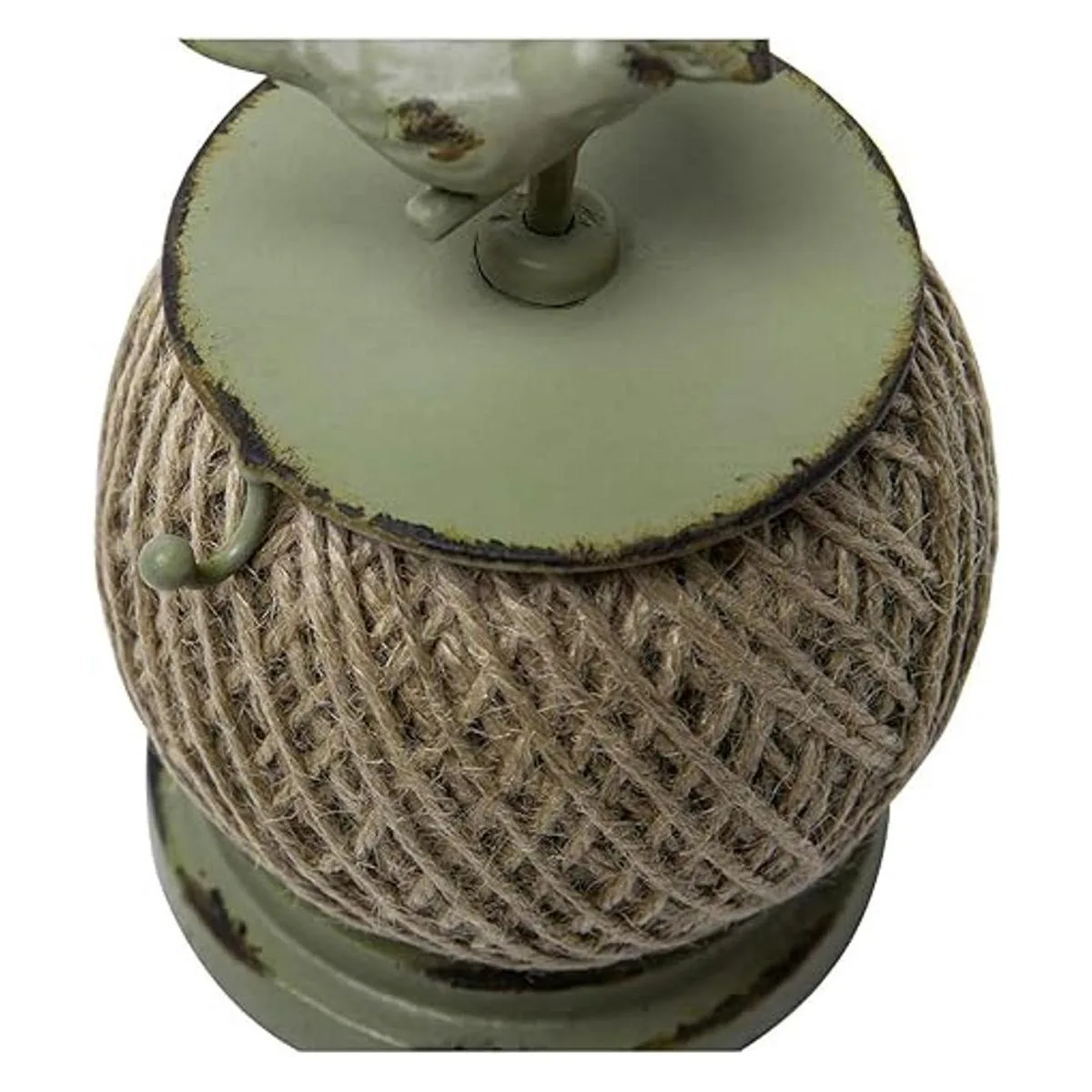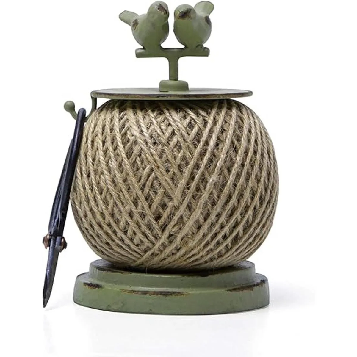 SOFFEE DESIGN Juego de carrete de yute vintage con soporte para tijeras para jardín, granja, cocina, cordeles antiguos y tijeras, pájaros verdes