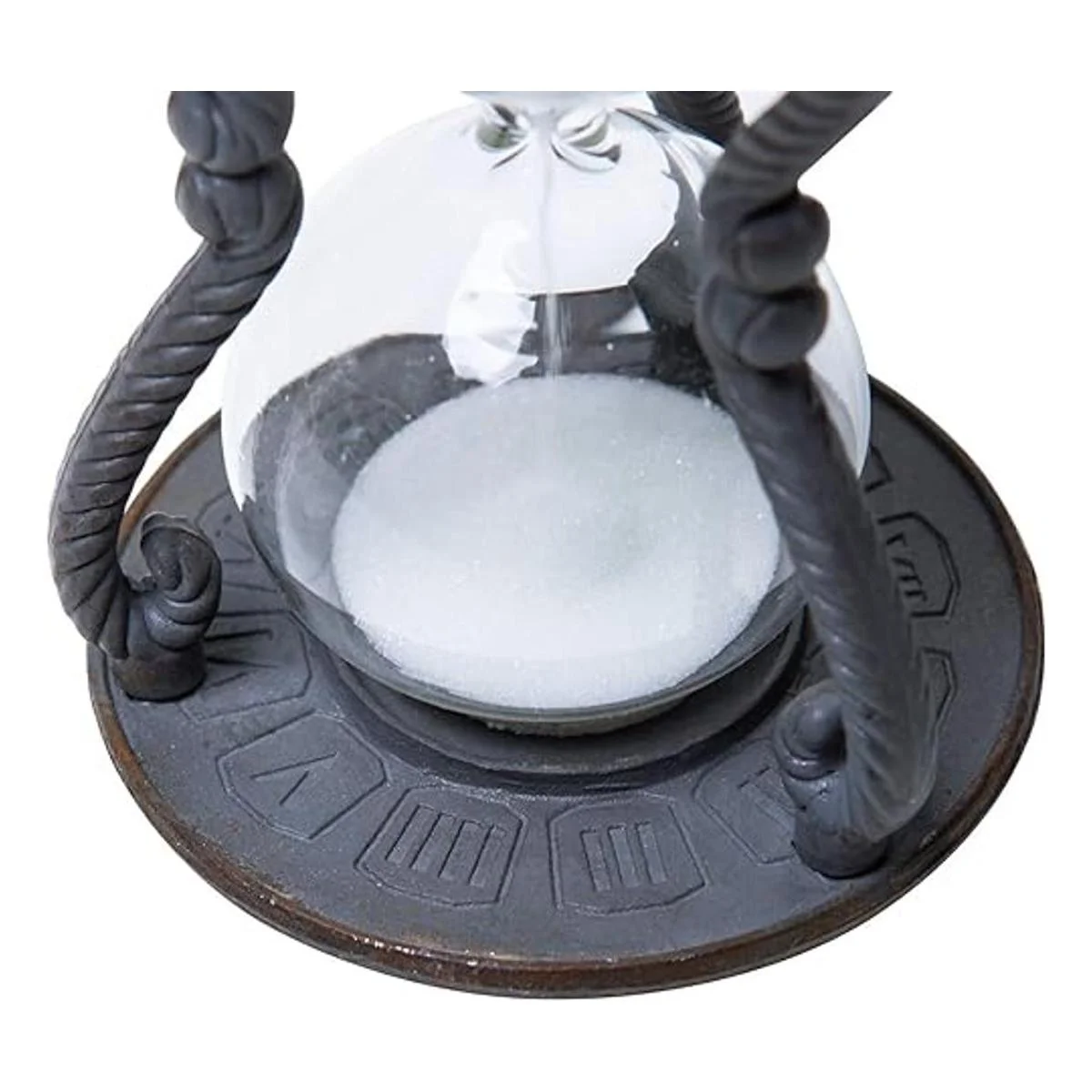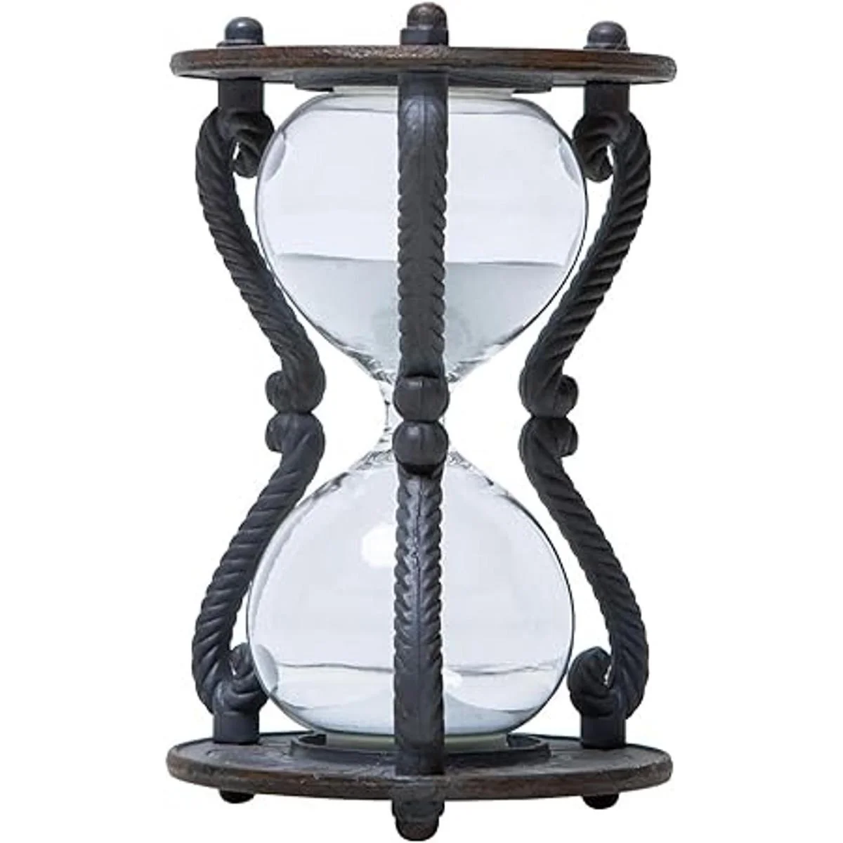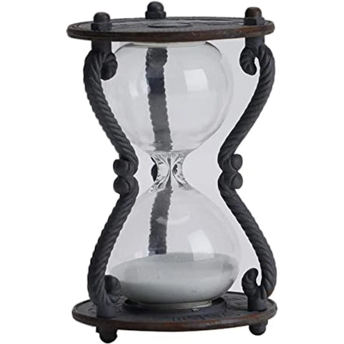 SOFFEE DESIGN Temporizador de arena rústico de 6 minutos, reloj de arena envejecido vintage, reloj de arena con arena blanca, vidrio de arena antiguo para decoración del hogar, escritorio, cocina, oficina, color negro