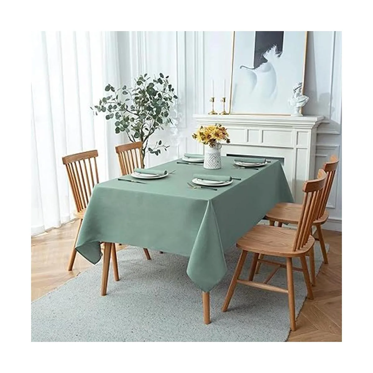 Softalker Mantel rectangular jacquard Mantel impermeable con patrón de líneas geométricas, damasco resistente a las manchas, manteles de poliéster lavables para cocina, comedor y fiestas 60 x 84 pulgadas, verde azulado