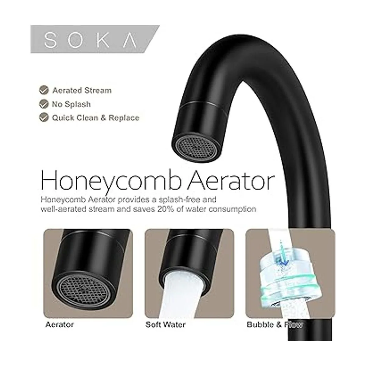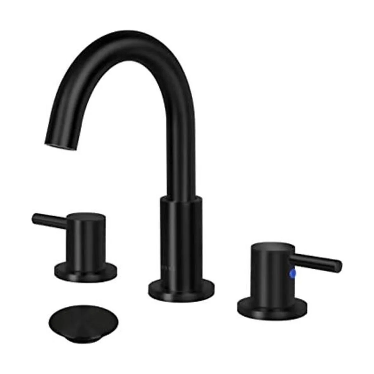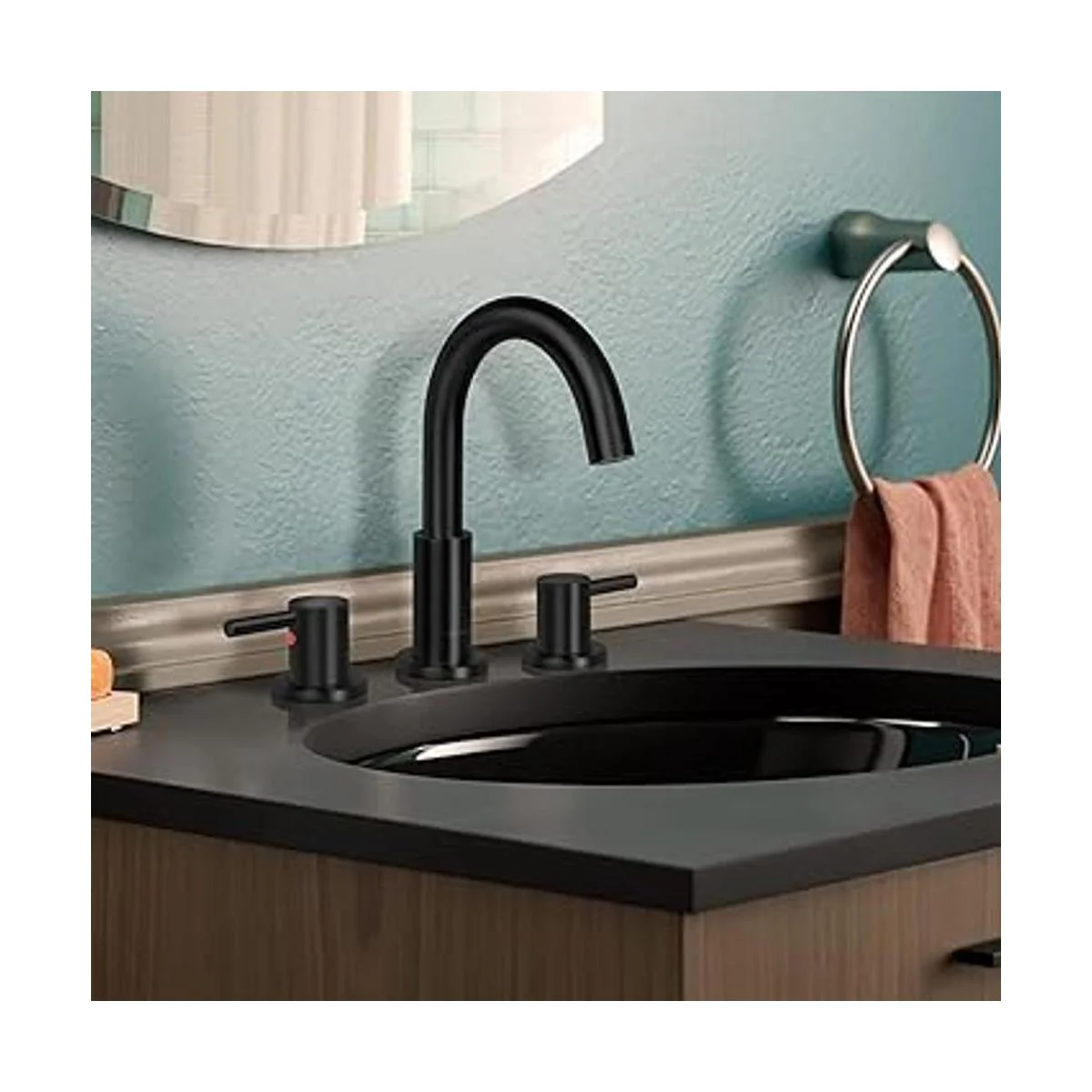 SOKA Grifo de baño de 8 a 16 pulgadas, color negro mate, grifo de baño de 2 manijas, grifo de baño Morden para fregadero, grifo de tocador comercial industrial de 3 agujeros, con drenaje desplegable, negro mate G