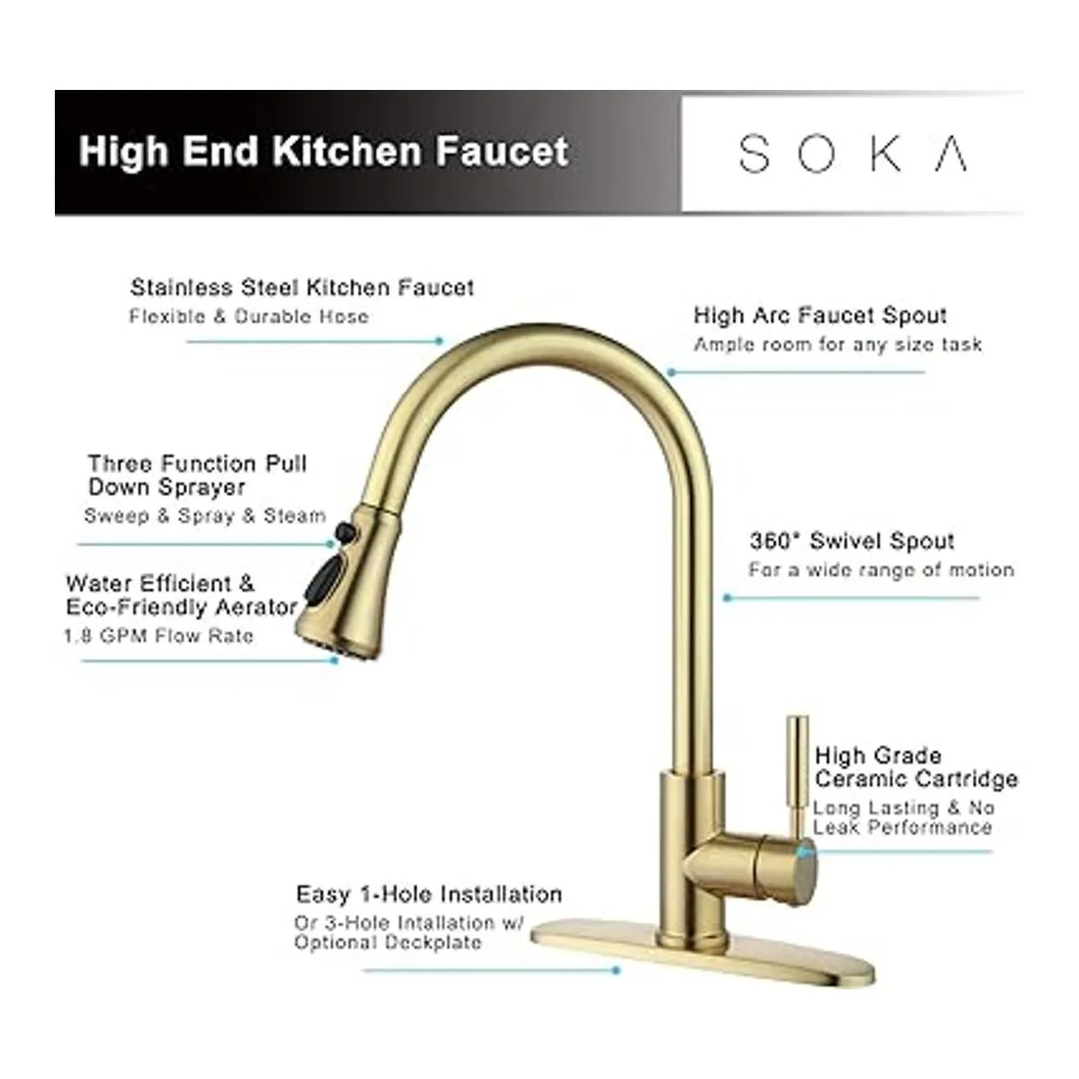 Fácil de configurar: el grifo de cocina es fácil de configurar en pocos minutos con el manual de instalación idioma español no garantizado. El paquete de grifos de fregadero de una sola manija incluye todos los accesorios, embalaje cuidadosamente diseñado de forma independiente, envoltura de esponja completa protege todos los accesorios de daños, este grifo de fregadero de cocina es el compañero perfecto para ti.