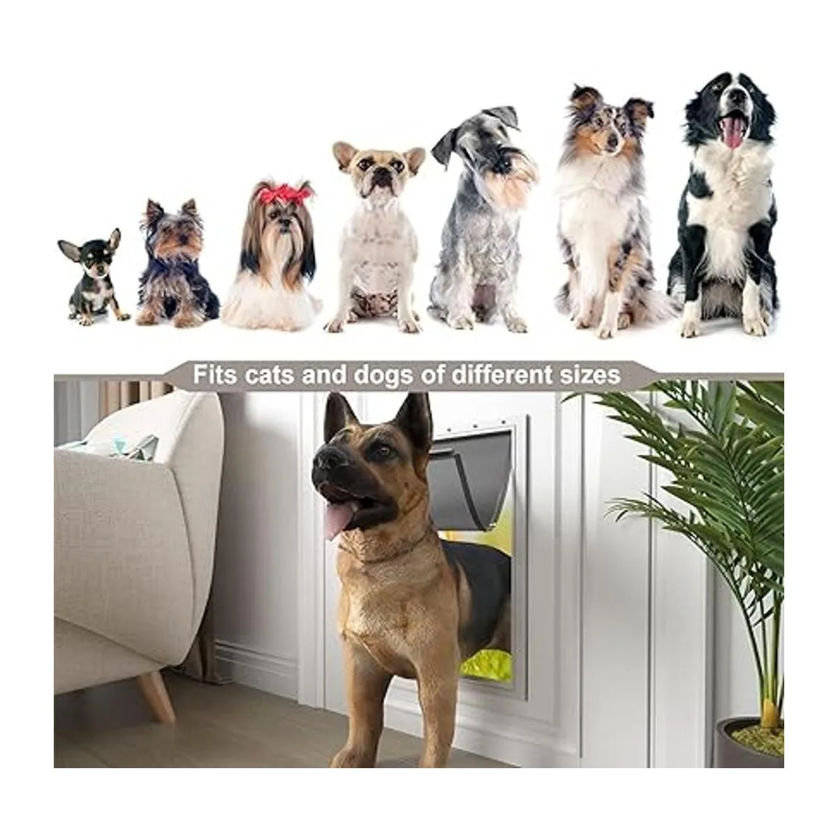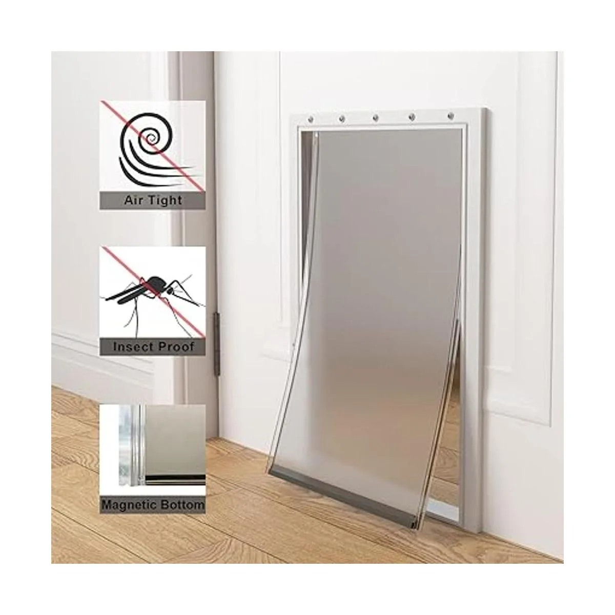 Protección contra el viento, la lluvia, los rayos UV: repuesto de solapa grande para puerta de perro hecha de materiales flexibles y duraderos, tira magnética en la parte inferior de la solapa, puede aspirar la parte inferior firmemente, adecuado para todas las estaciones