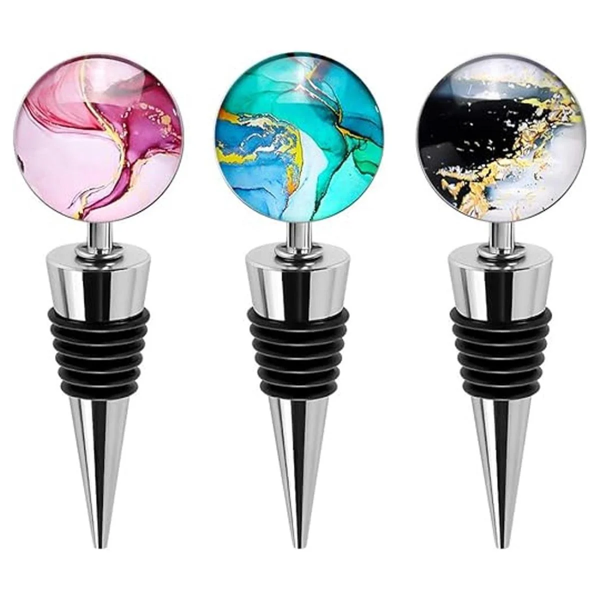 Soleebee Pack de 3 tapones decorativos para botella de vino con hermoso cristal artístico, tapones para botellas de bebidas para regalos, bares, fiestas de vacaciones, bodas estilo J