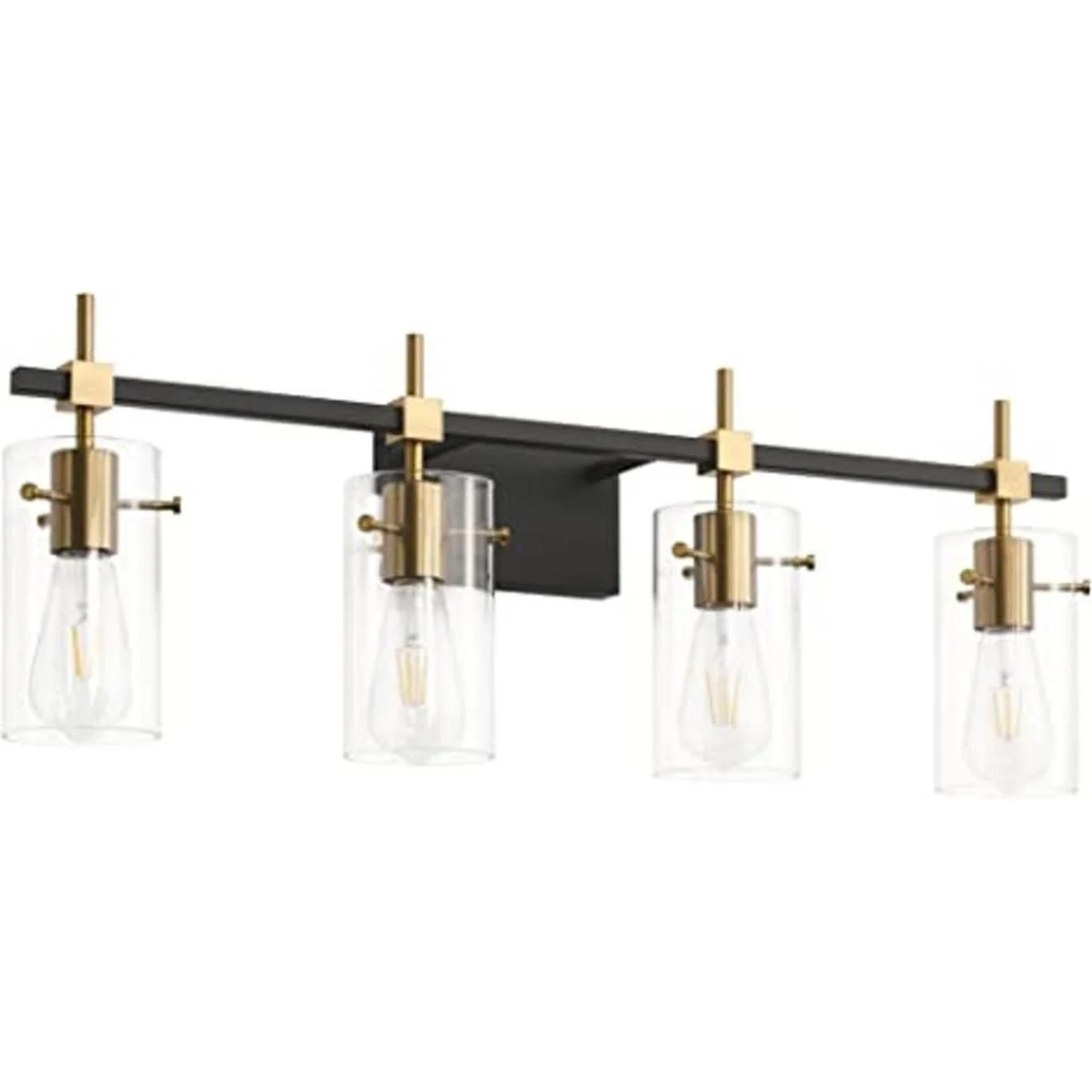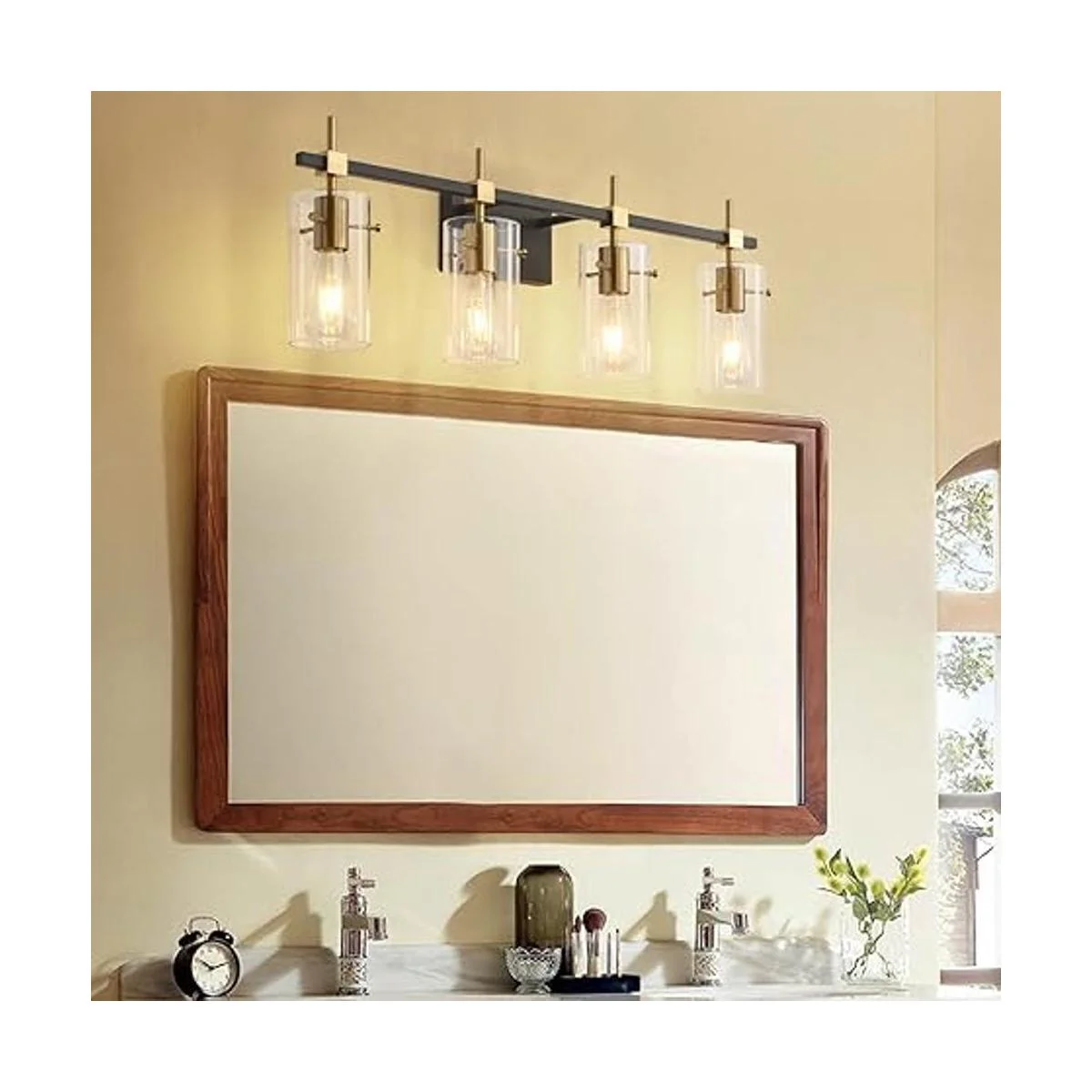 SOLFART Farmhouse Lámpara de pared de bronce para baño, con pantalla de cristal, 4 luces
