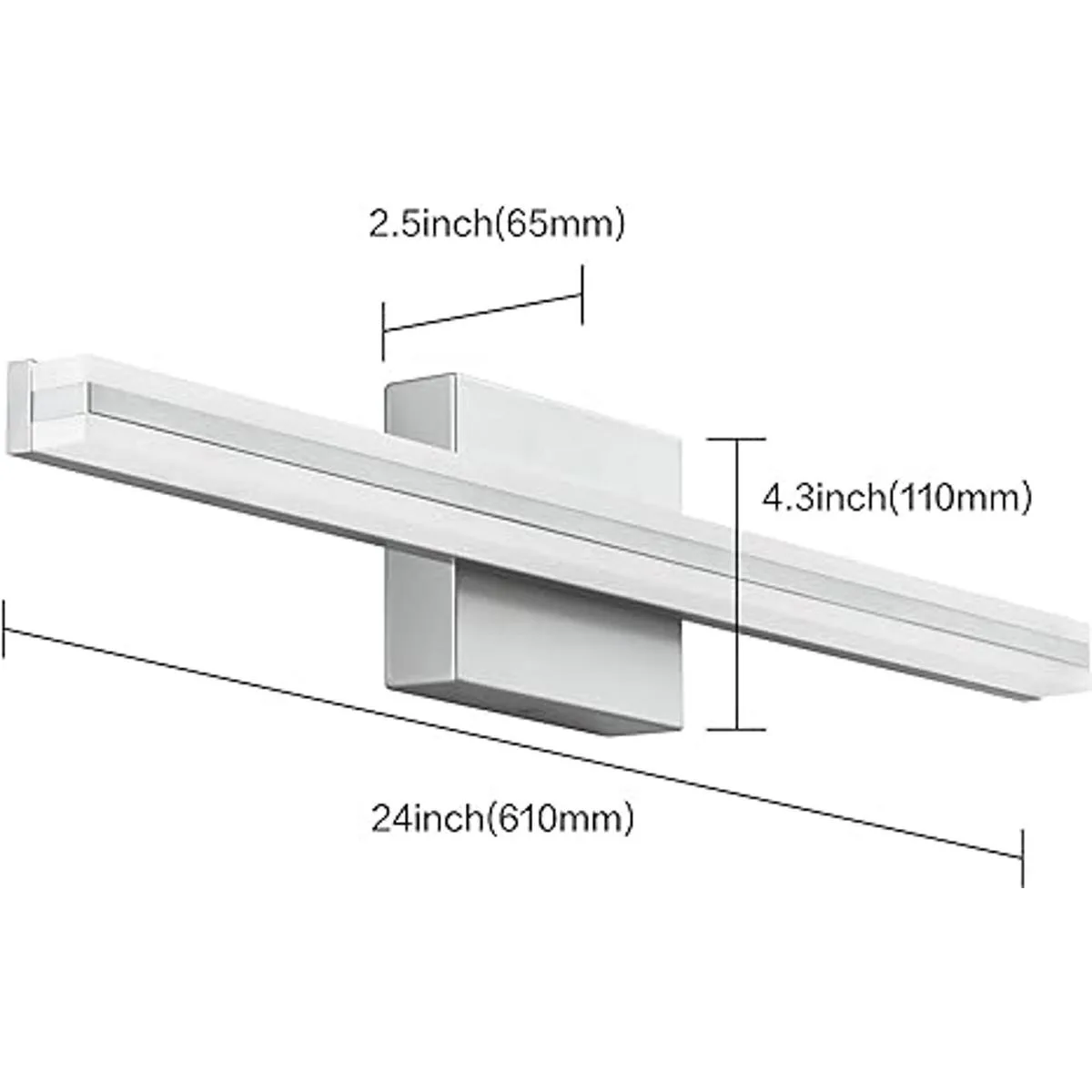 SOLFART Luz LED regulable para tocador de baño sobre espejo plateado, accesorios de iluminación modernos con acrílico