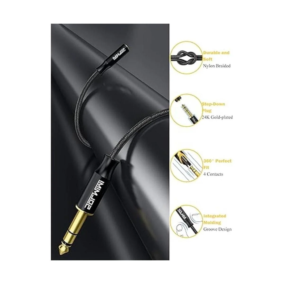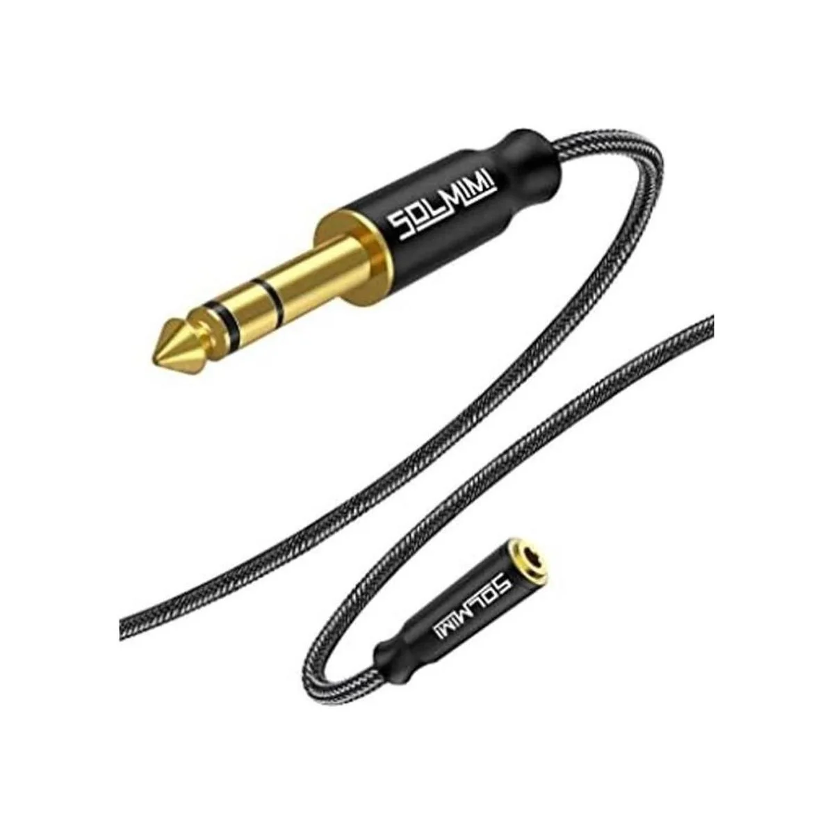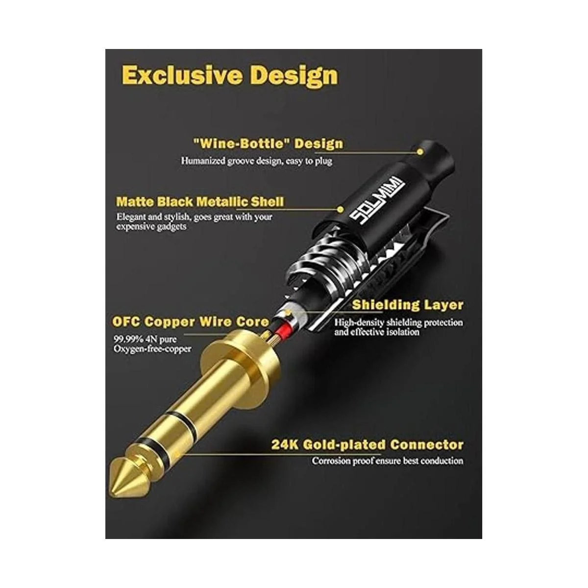 SOLMIMI Adaptador de auriculares 14, adaptador de conector de audio macho de 0.250 in a hembra de 0.138 in, adaptador de conector de auriculares estéreo sin pérdidas para mezclador, guitarra, amplificador de piano o más negro mate 11.8 in