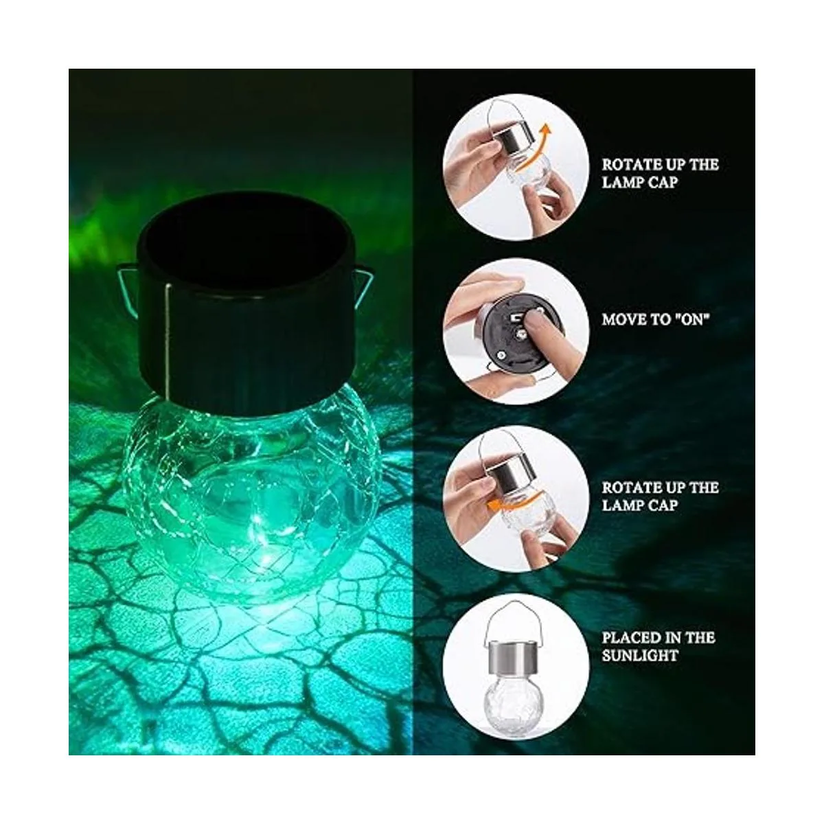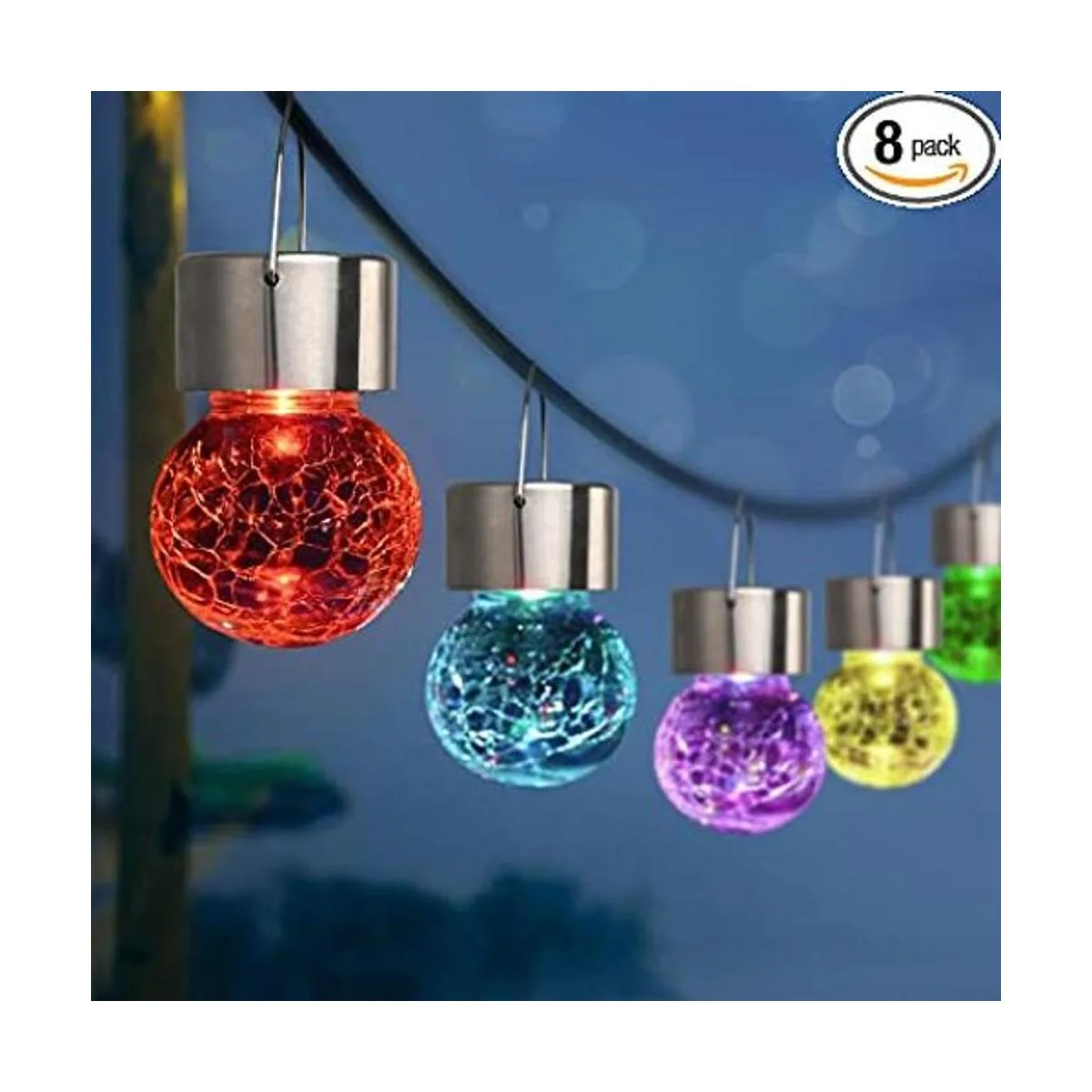 Solpex Luces solares colgantes para exteriores, paquete de 8 luces decorativas de bola de vidrio agrietado, iluminación de globo impermeable alimentada por energía solar, luces solares colgantes para jardín, patio, césped, cama de flores