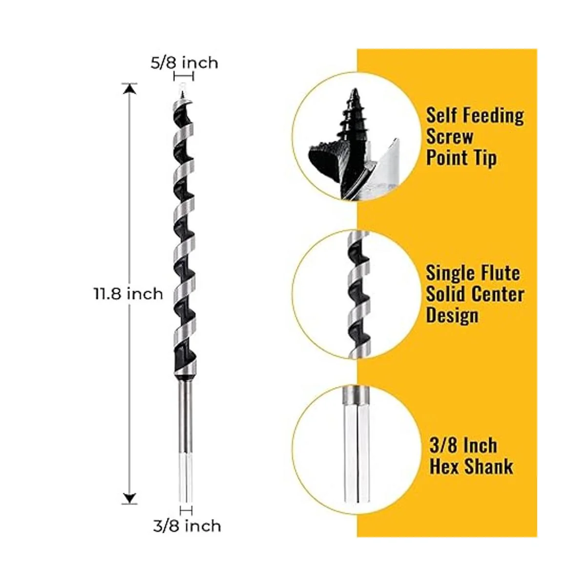 Punta de tornillo grueso autoalimentación diseñada para una perforación más rápida. El borde de corte de un solo espolón escribe la circunferencia del agujero para un acabado más suave. Una broca perfecta de 12 pulgadas para muchos proyectos de bricolaje.