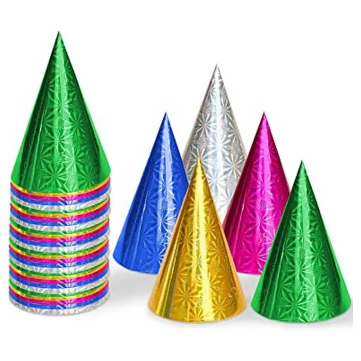 Reutilizables y ligeros Estos sombreros de cono de color metálico están hechos de papel, ligeros y reutilizables, duraderos y fiables, cada uno mide aproximadamente 7.87 x 5.5 pulgadas, adecuado para la mayoría de las personas cabezas y mascotas. La cuerda del sombrero también es elástica, lo que hace que estos sombreros sean cómodos de llevar.