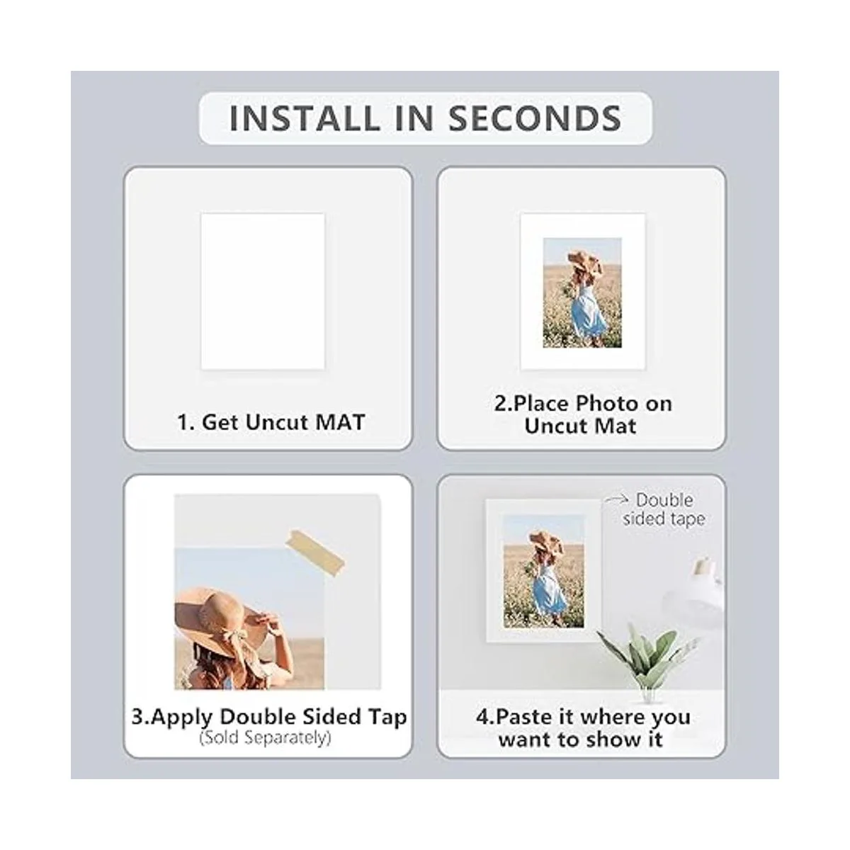 Tamaño total: 16 x 20 pulgadas se adapta a marcos de 16 x 20 pulgadas, 10 hojas completas de tableros de respaldo blancos, 4 capas de grosor 0.055 in o 1/16 pulgadas. Esta alfombrilla también se puede cortar en el tamaño y forma deseados para decorar para la próxima fiesta de cumpleaños, baby shower, reunión familiar o boda