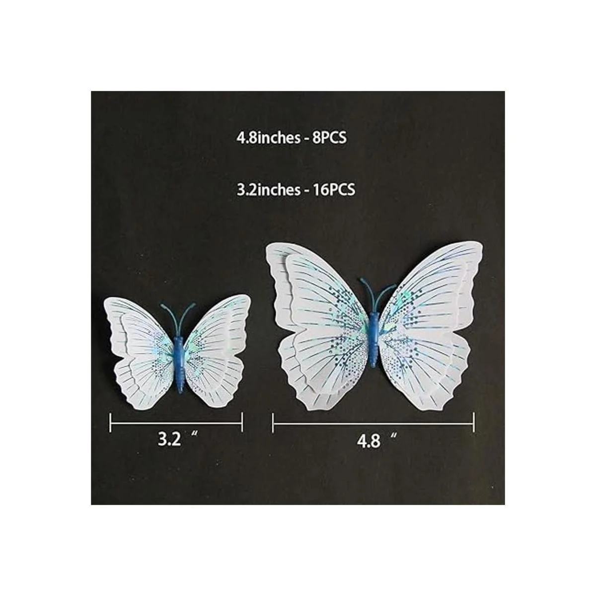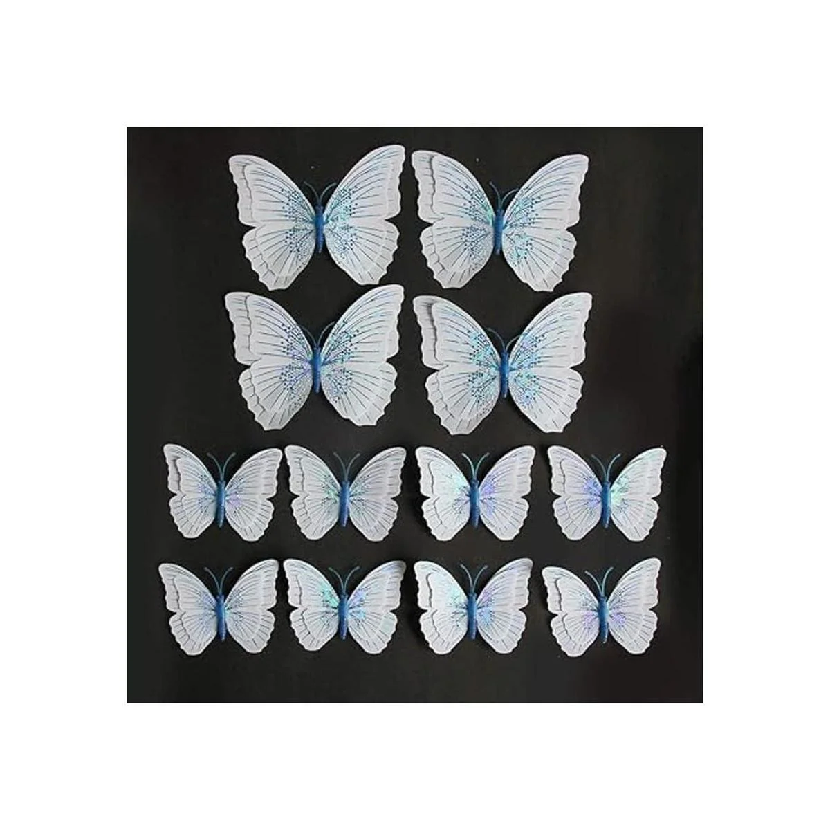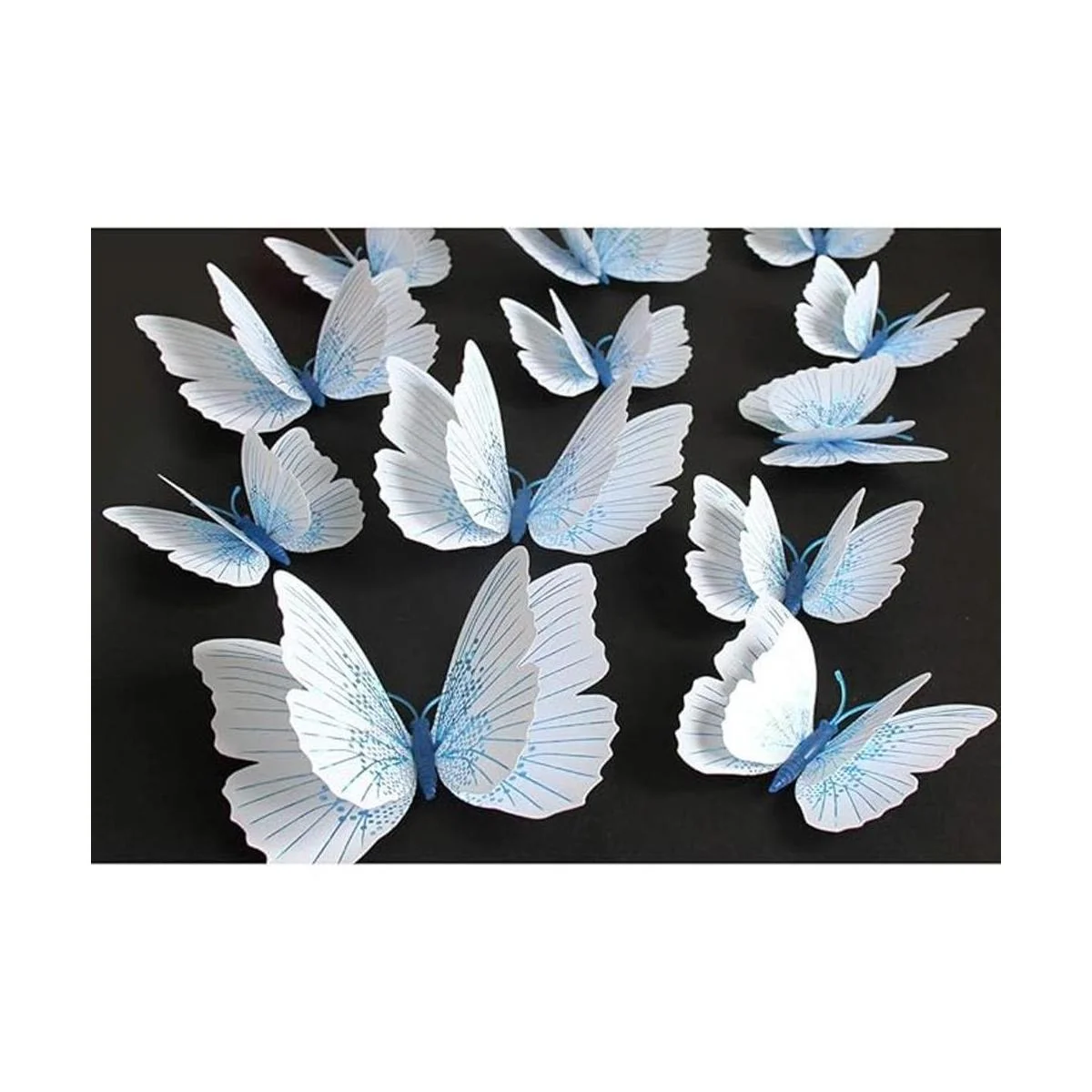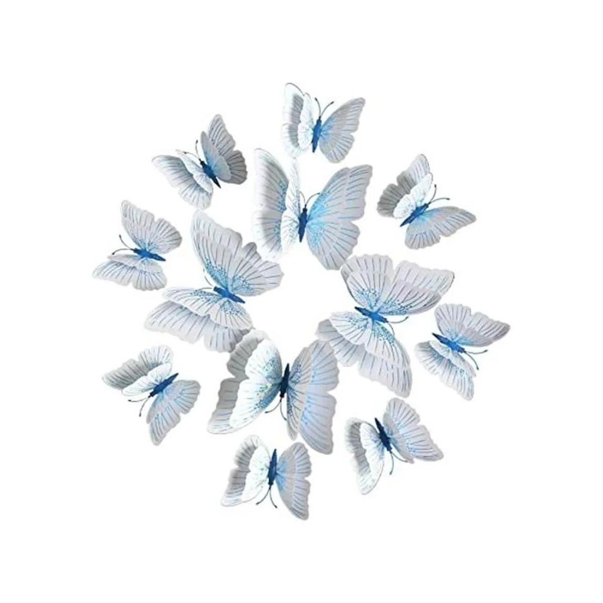 Somotersea 24 calcomanías de pared de mariposa 3D extraíbles para niñas, calcomanías de dormitorio y habitación de niños, mural de arte de doble alas, azul y blanco