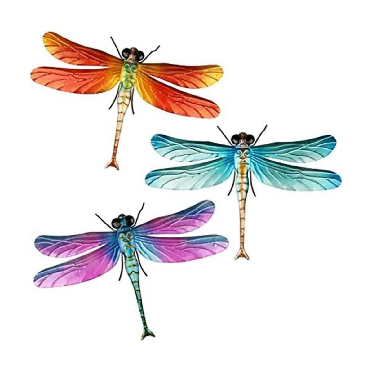 Songjum 3 piezas de metal libélula decoración de pared al aire libre, multicolor colgante 3D libélula decoración de pared arte para el hogar, dormitorio, jardín, decoración interior y exterior