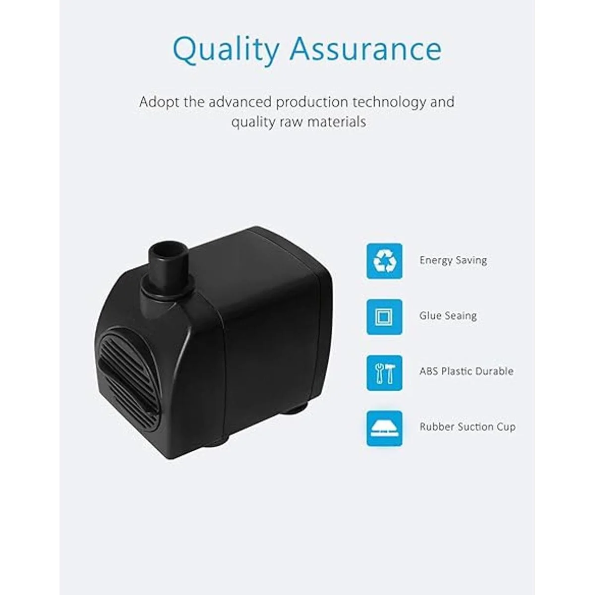 Ventosa y cable de alimentación de 6 pies: cable lo suficientemente largo para una fácil instalación. 4 ventosas fuertes en la parte inferior de la bomba ayudan a mantenerla en su lugar, por lo que puedes pegarla en el lado derecho del acuario, ya sea vertical u horizontalmente