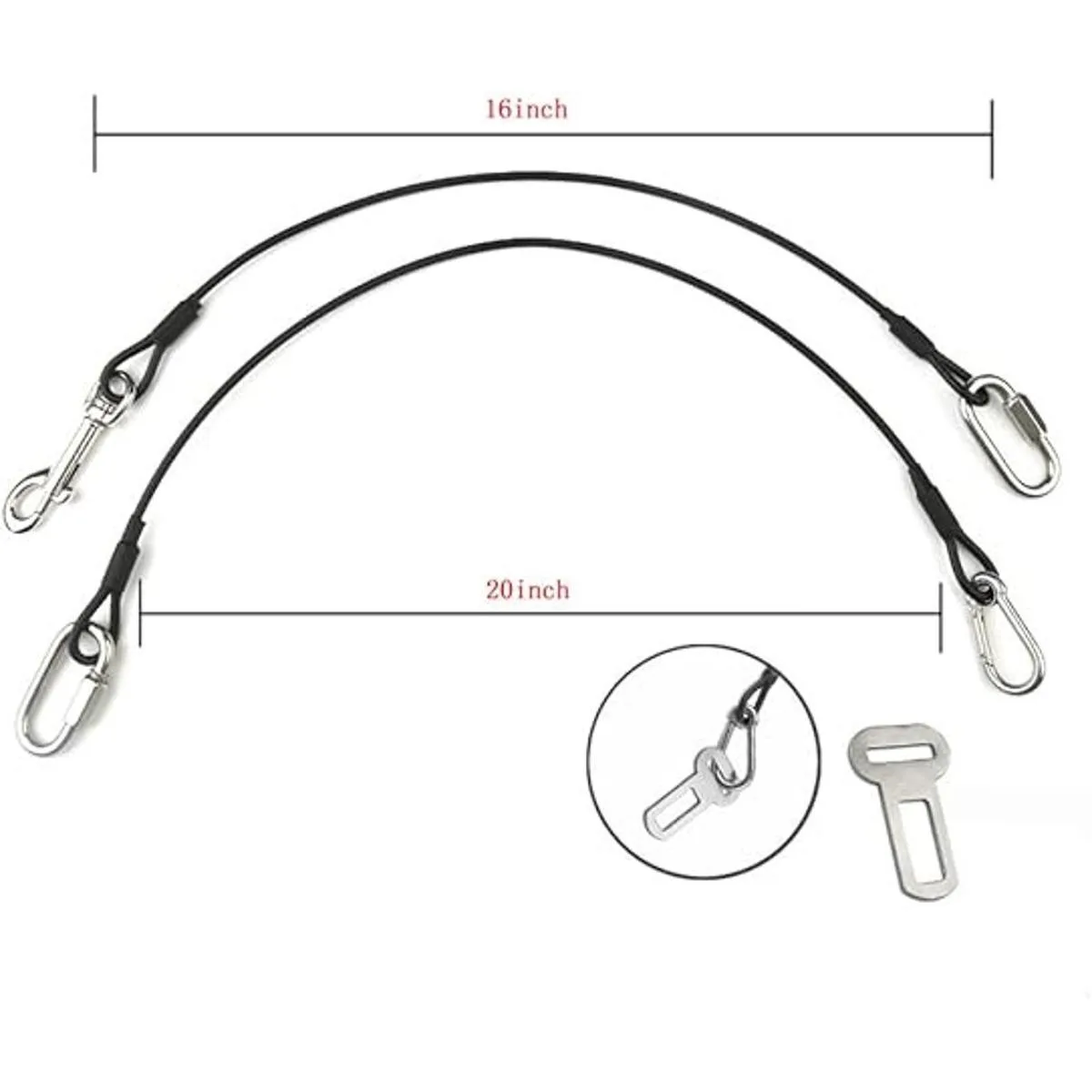 Fácil de elegir y universal: nuestro cinturón de seguridad que puede utilizar el clip se ajusta de 16 a 36 pulgadas a través de diferentes conexiones para perros pequeños, medianos, grandes y extragrandes.