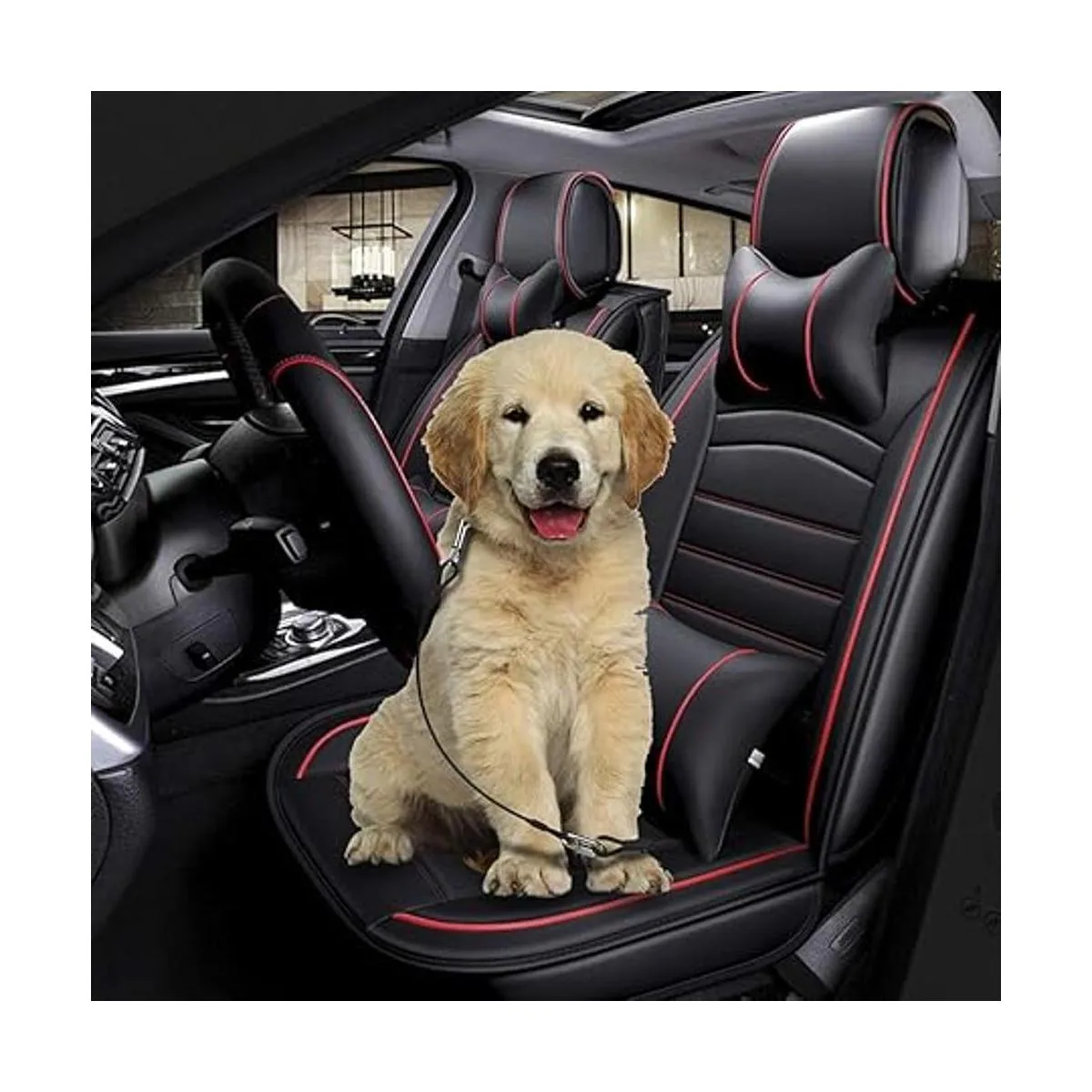 Retención a prueba de masticaciones: el cinturón de seguridad para perro está hecho de cuerda de acero recubierta de nailon resistente, puede evitar que muerda la cuerda. Es indestructible y duradero.